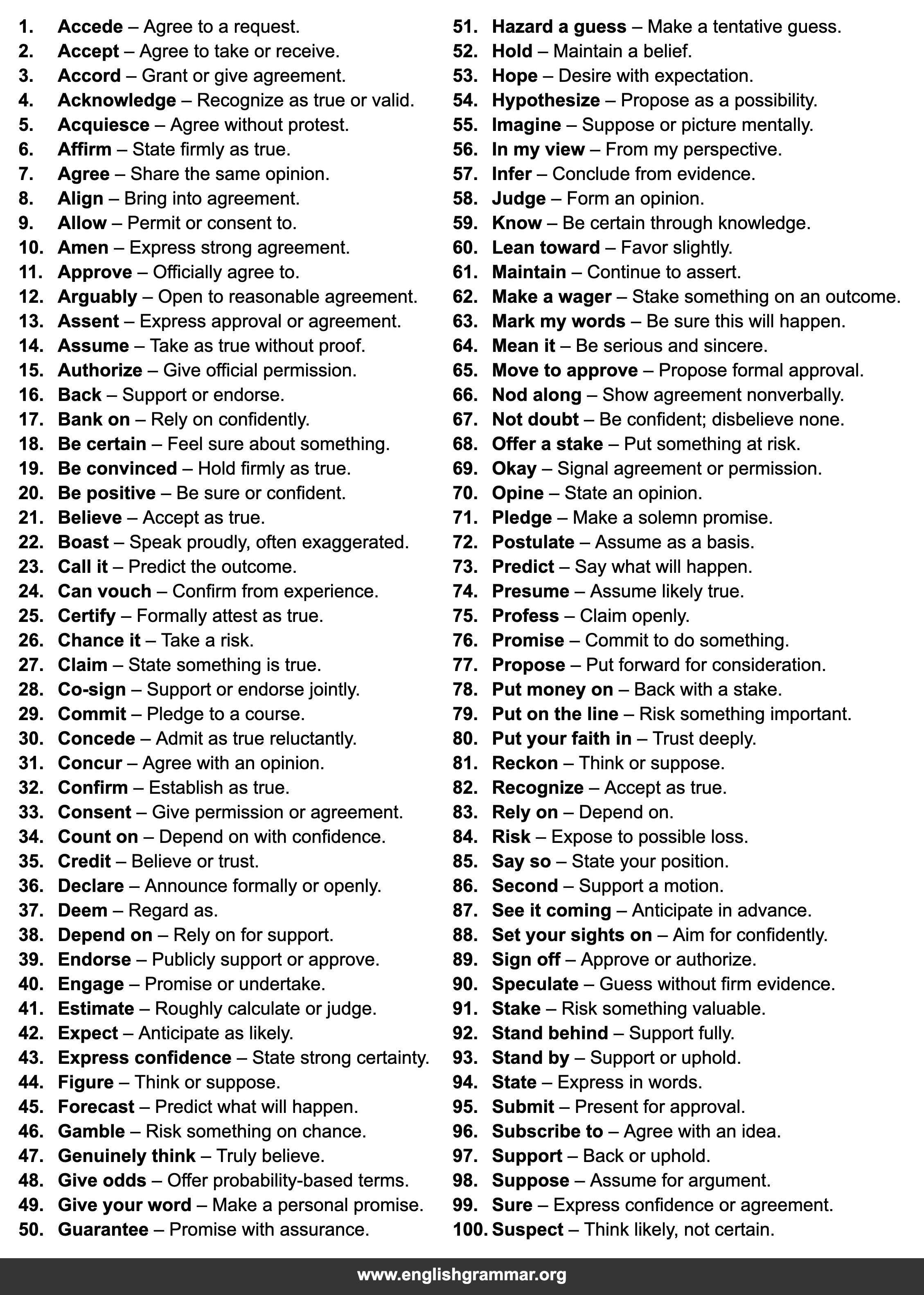 | 22. | Boast | Speak proudly, often exaggerated. |