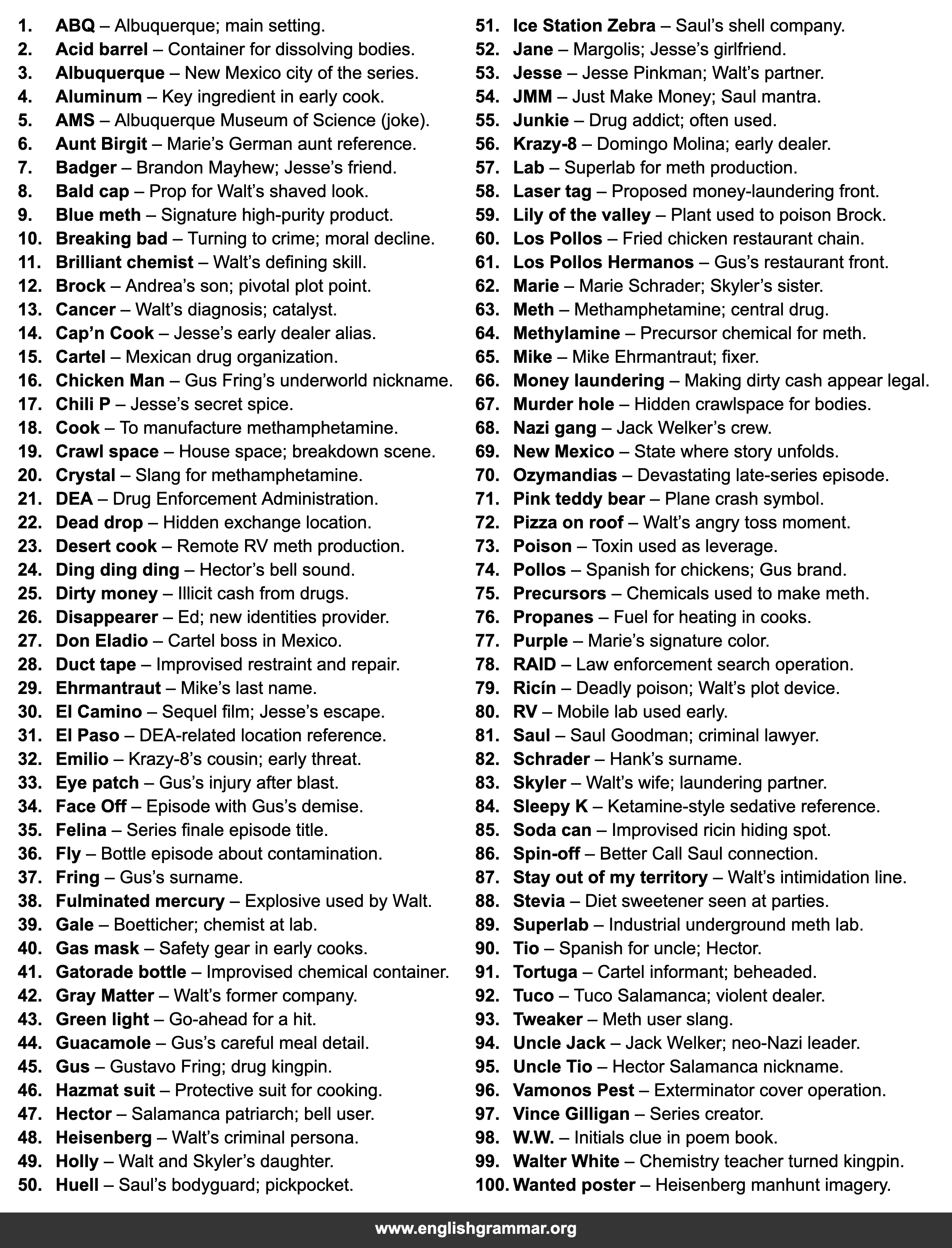 | 48. | Heisenberg | Walt’s criminal persona. |