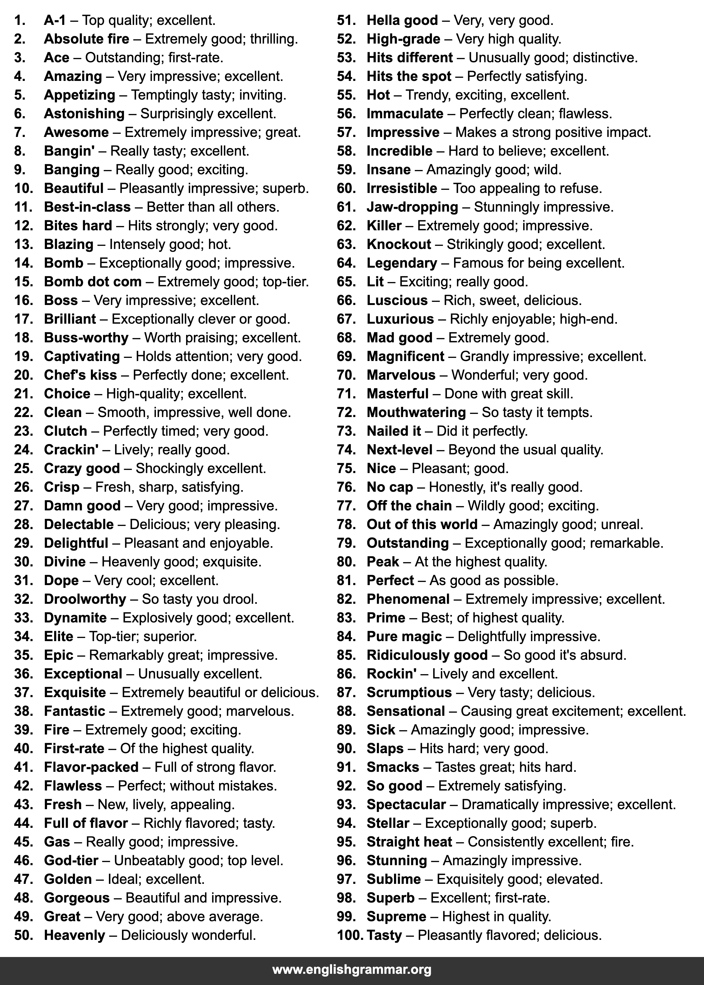 | 98. | Superb | Excellent; first-rate. |