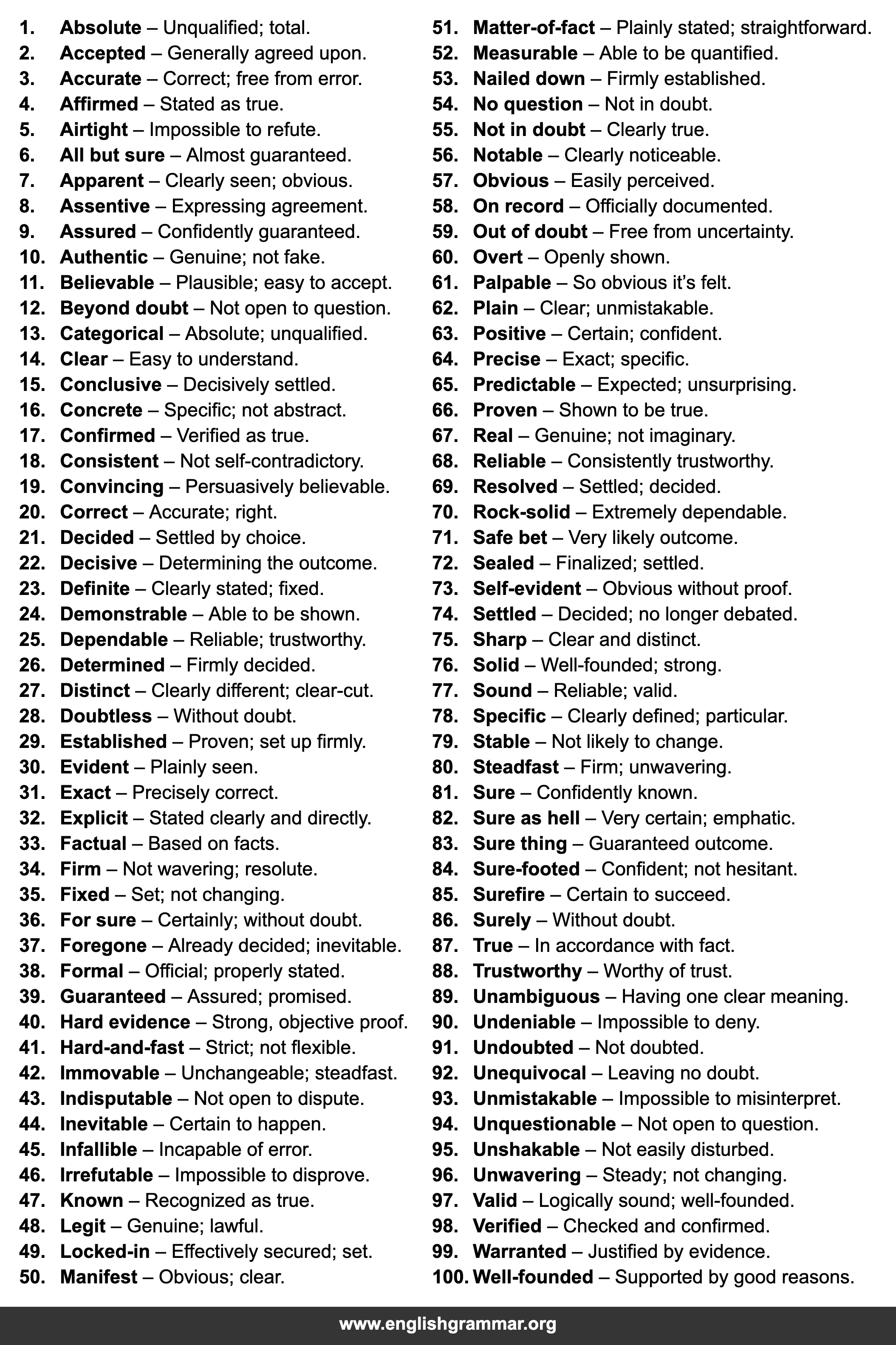 | 93. | Unmistakable | Impossible to misinterpret. |