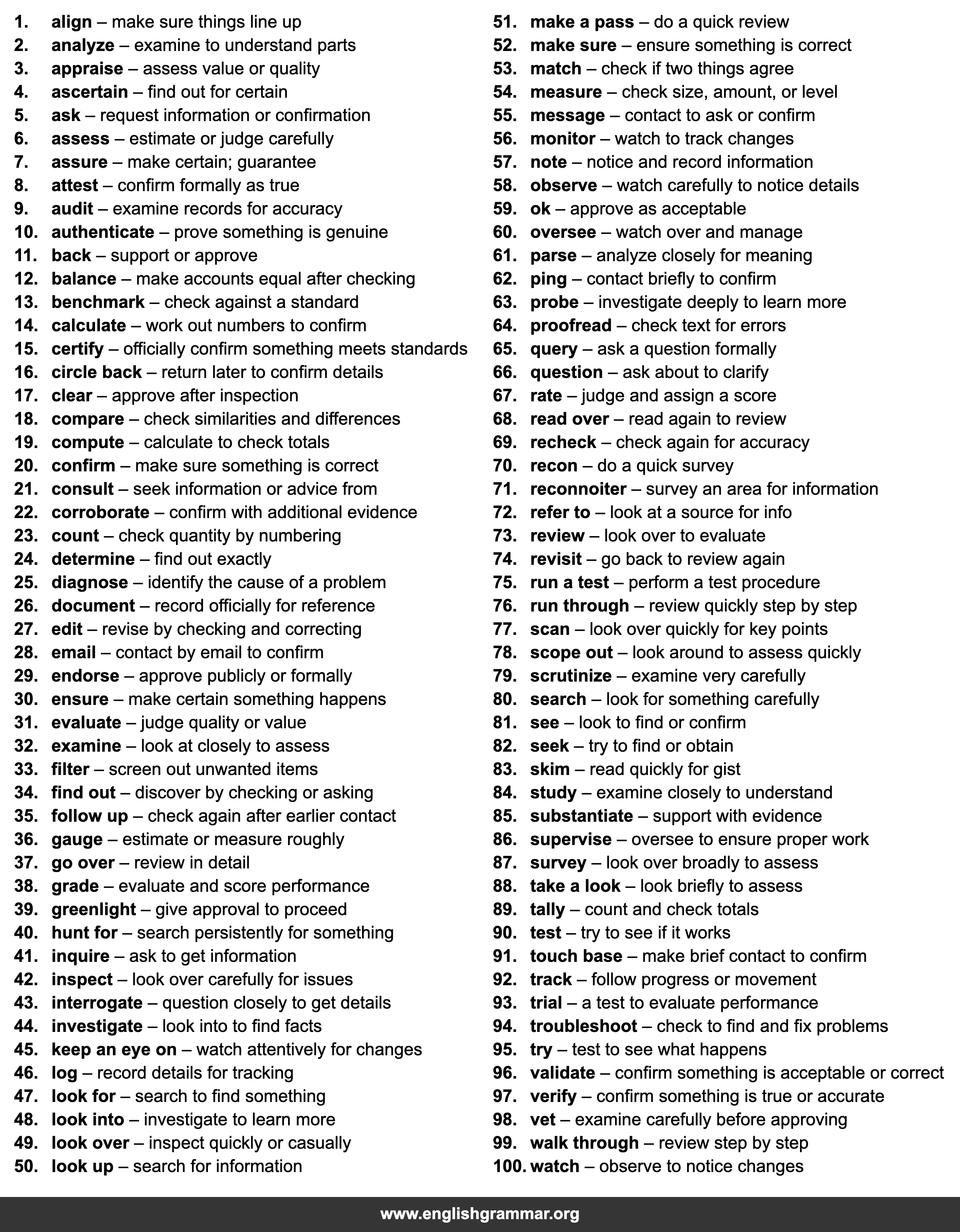 | 97. | verify | confirm something is true or accurate |