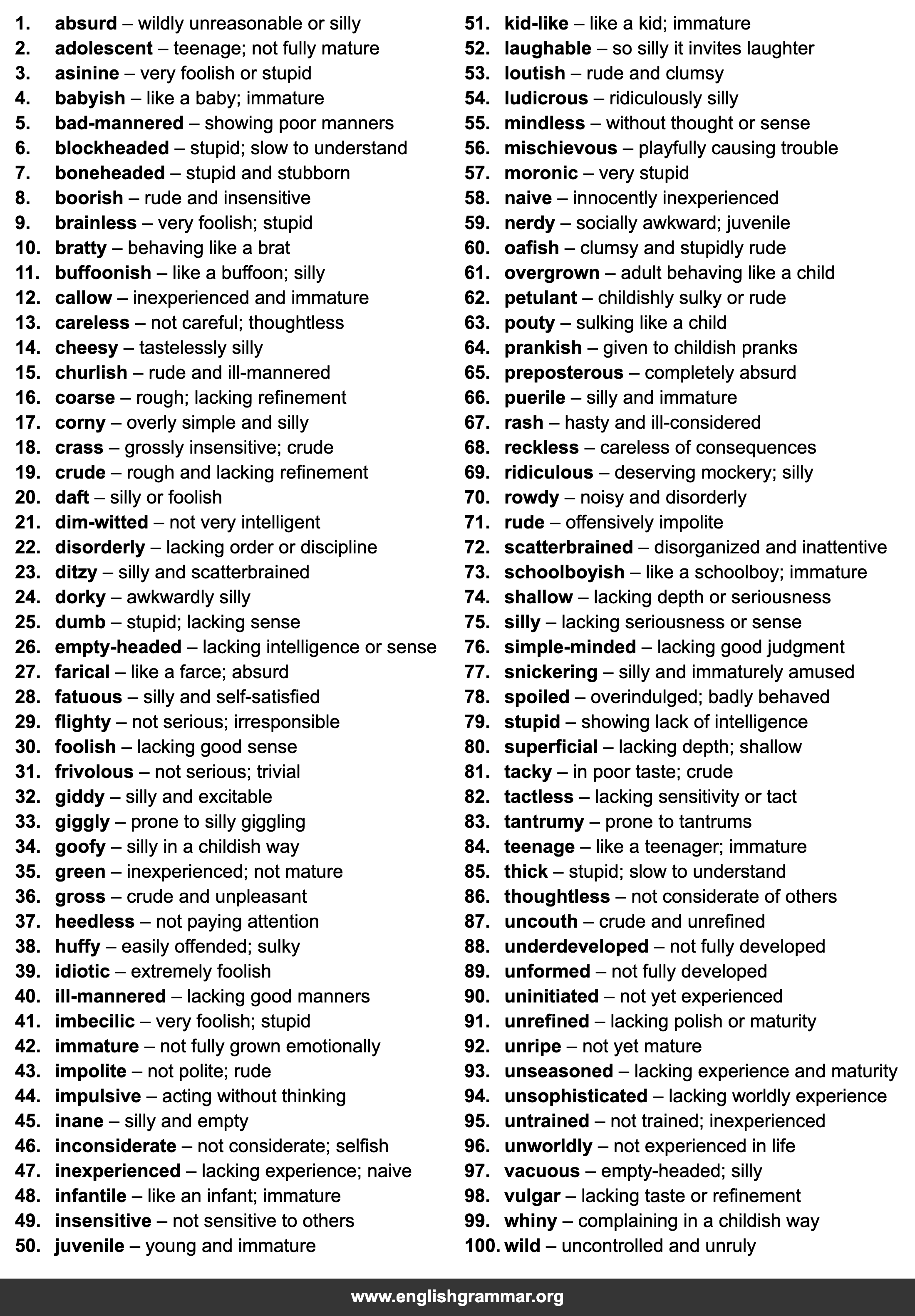 | 30. | foolish | lacking good sense |