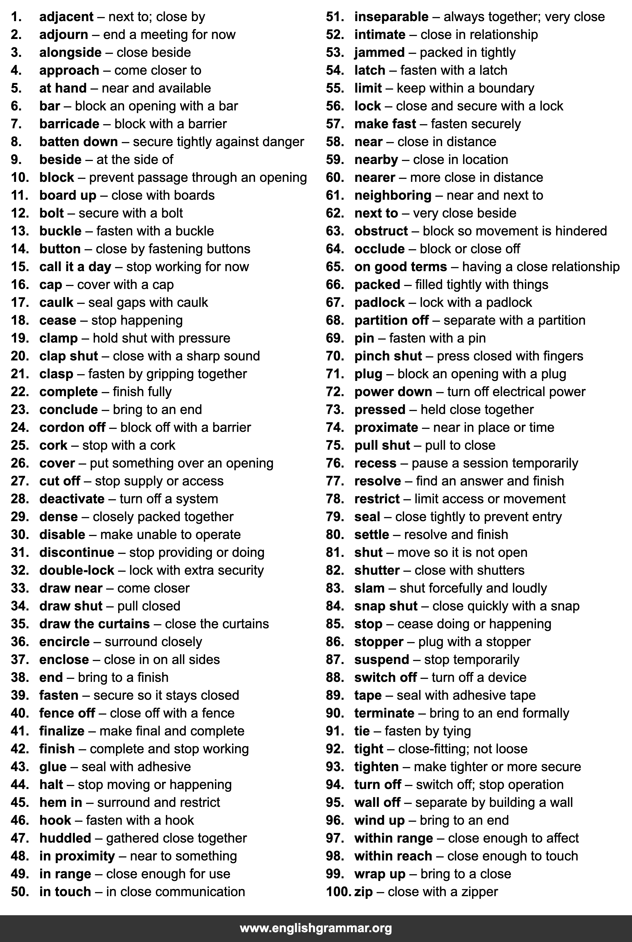 | 34. | draw shut | pull closed |