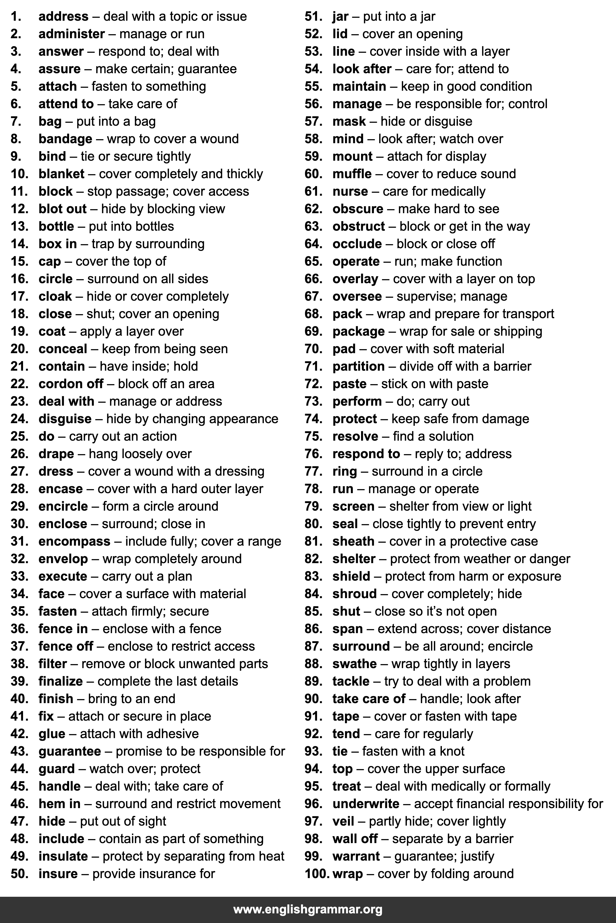 | 100. | wrap | cover by folding around |