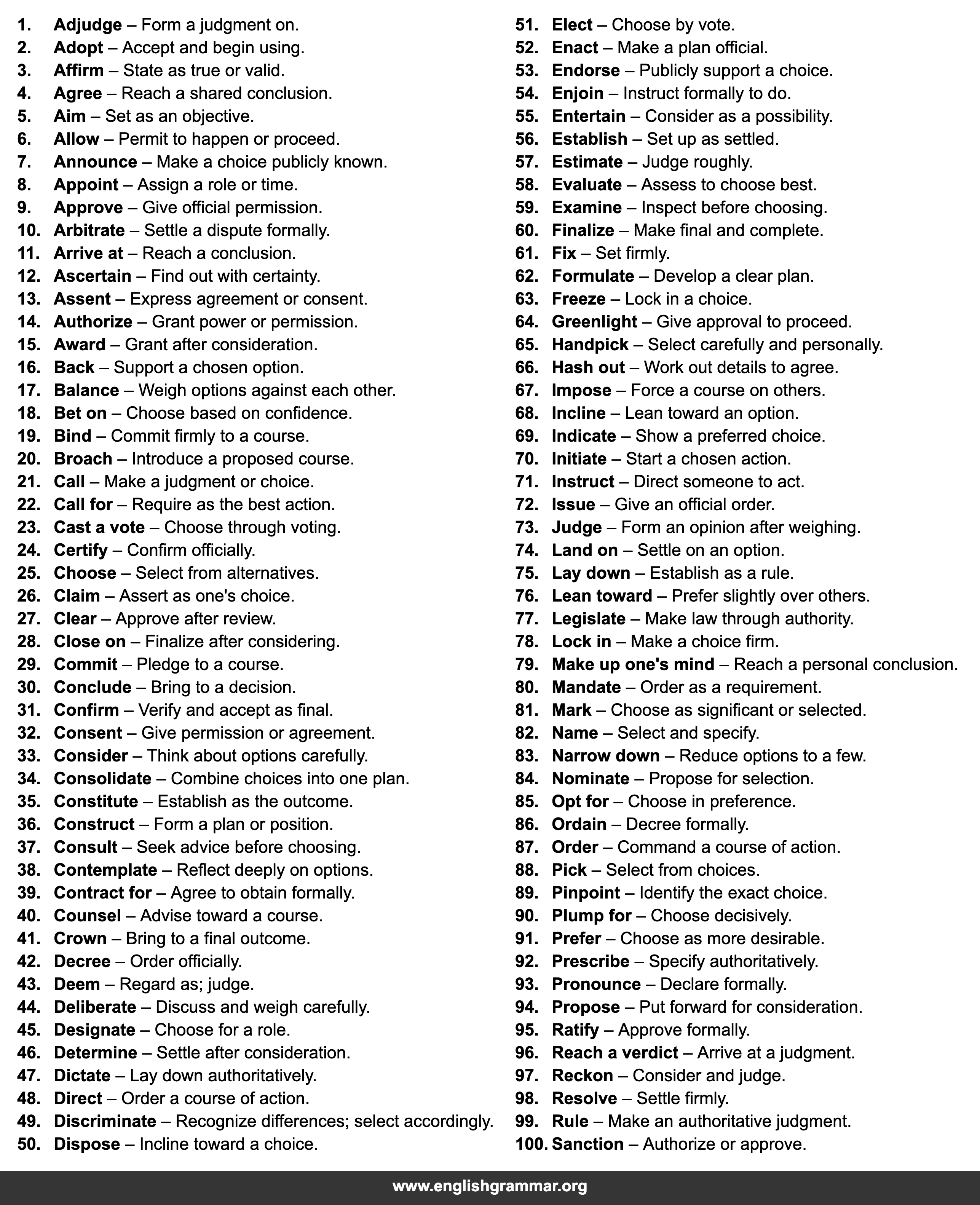 | 44. | Deliberate | Discuss and weigh carefully. |