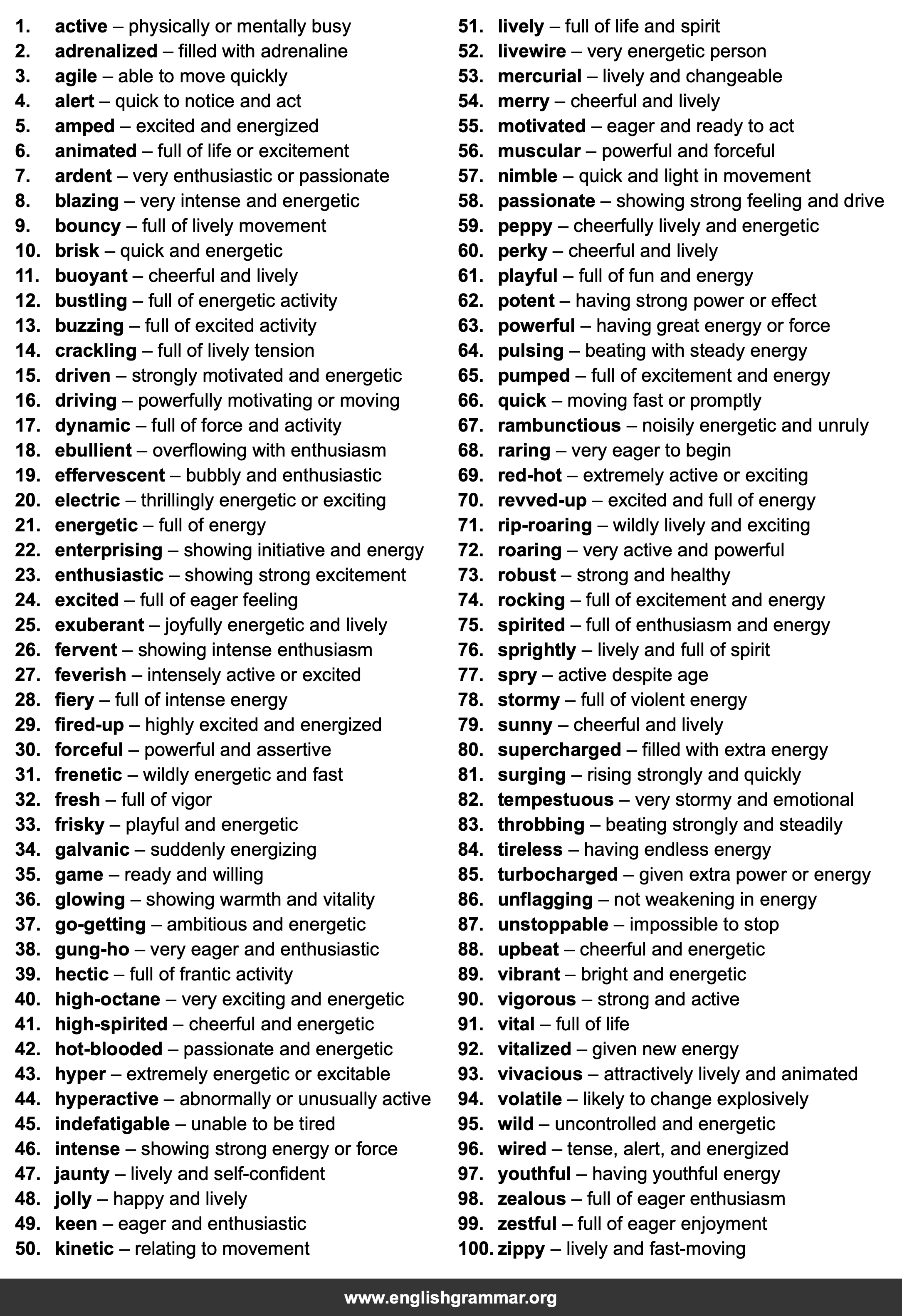 | 21. | energetic | full of energy |