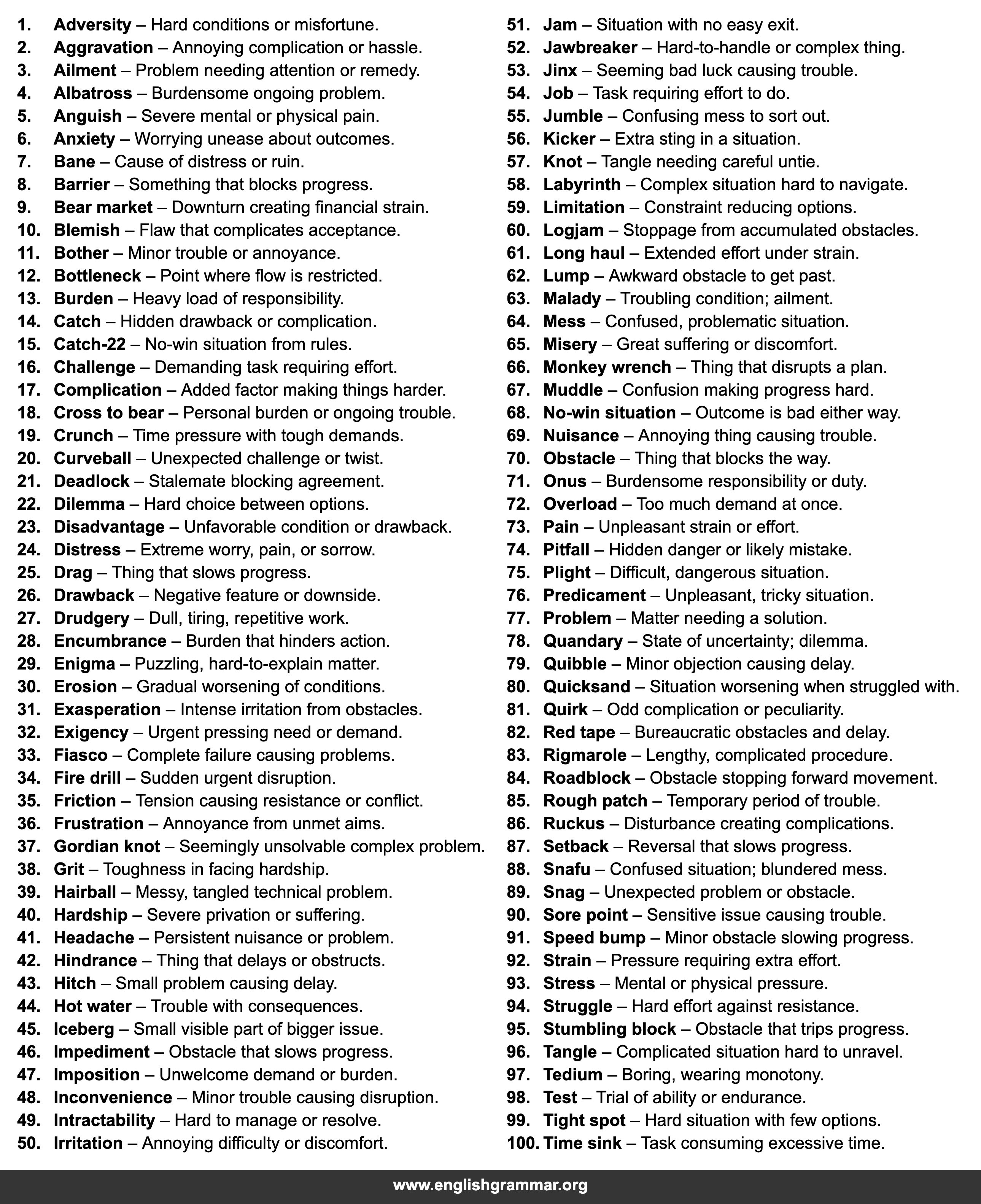 | 2. | Aggravation | Annoying complication or hassle. |