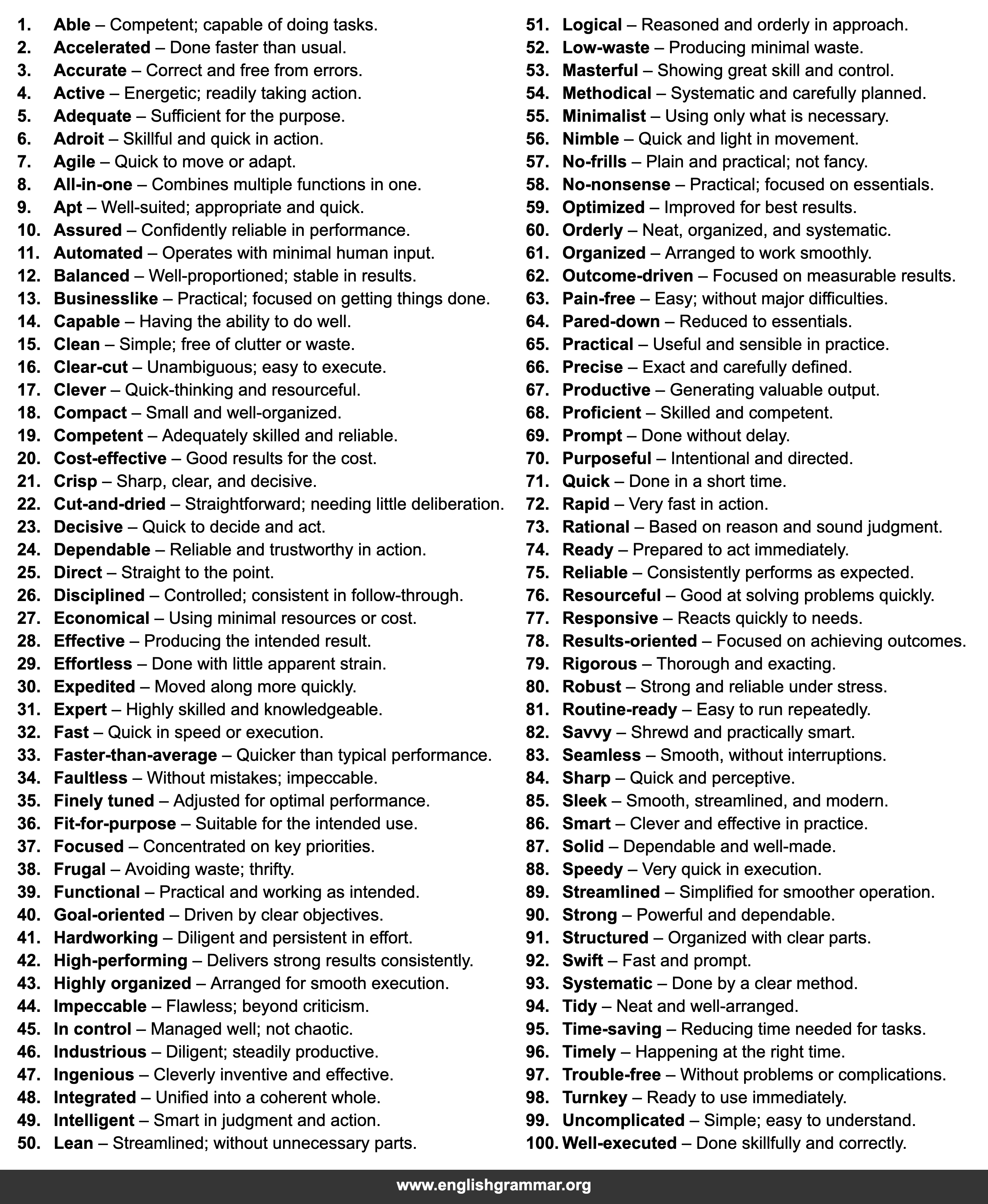 | 95. | Time-saving | Reducing time needed for tasks. |