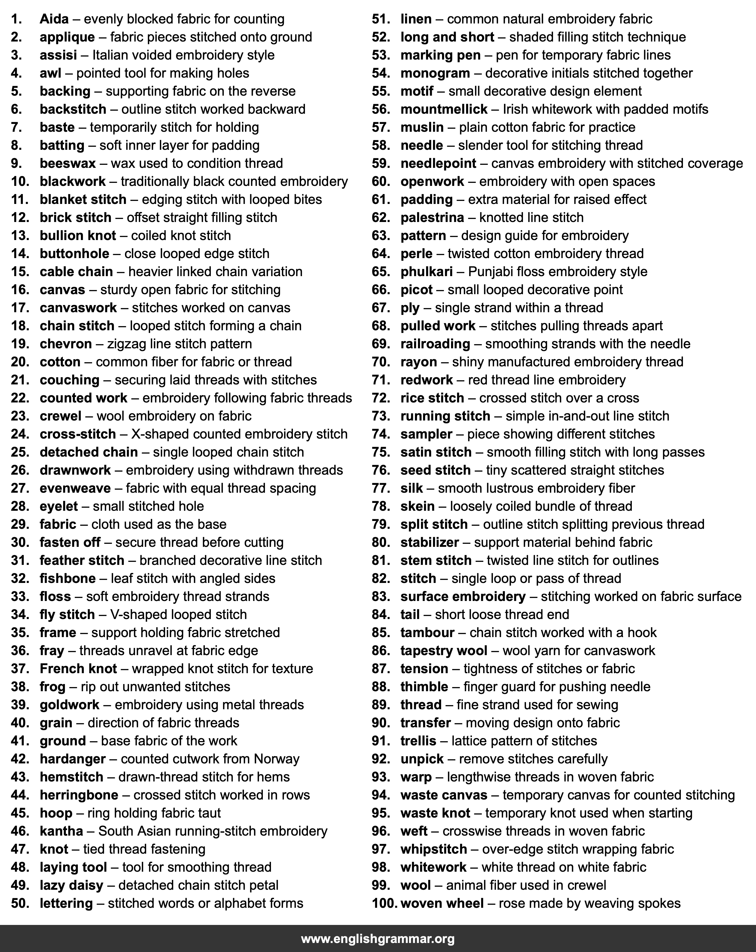 | 46. | kantha | South Asian running-stitch embroidery |