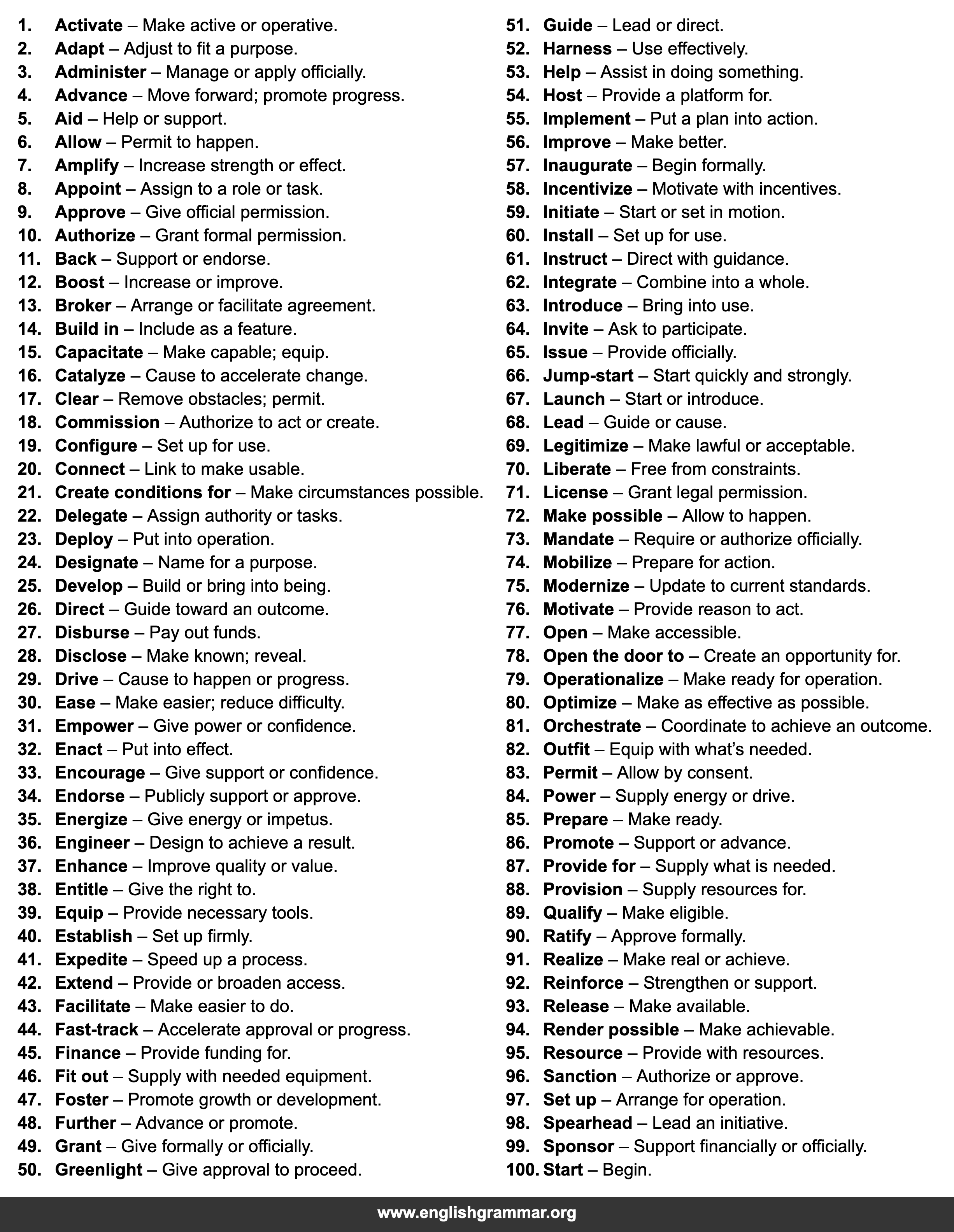 | 81. | Orchestrate | Coordinate to achieve an outcome. |