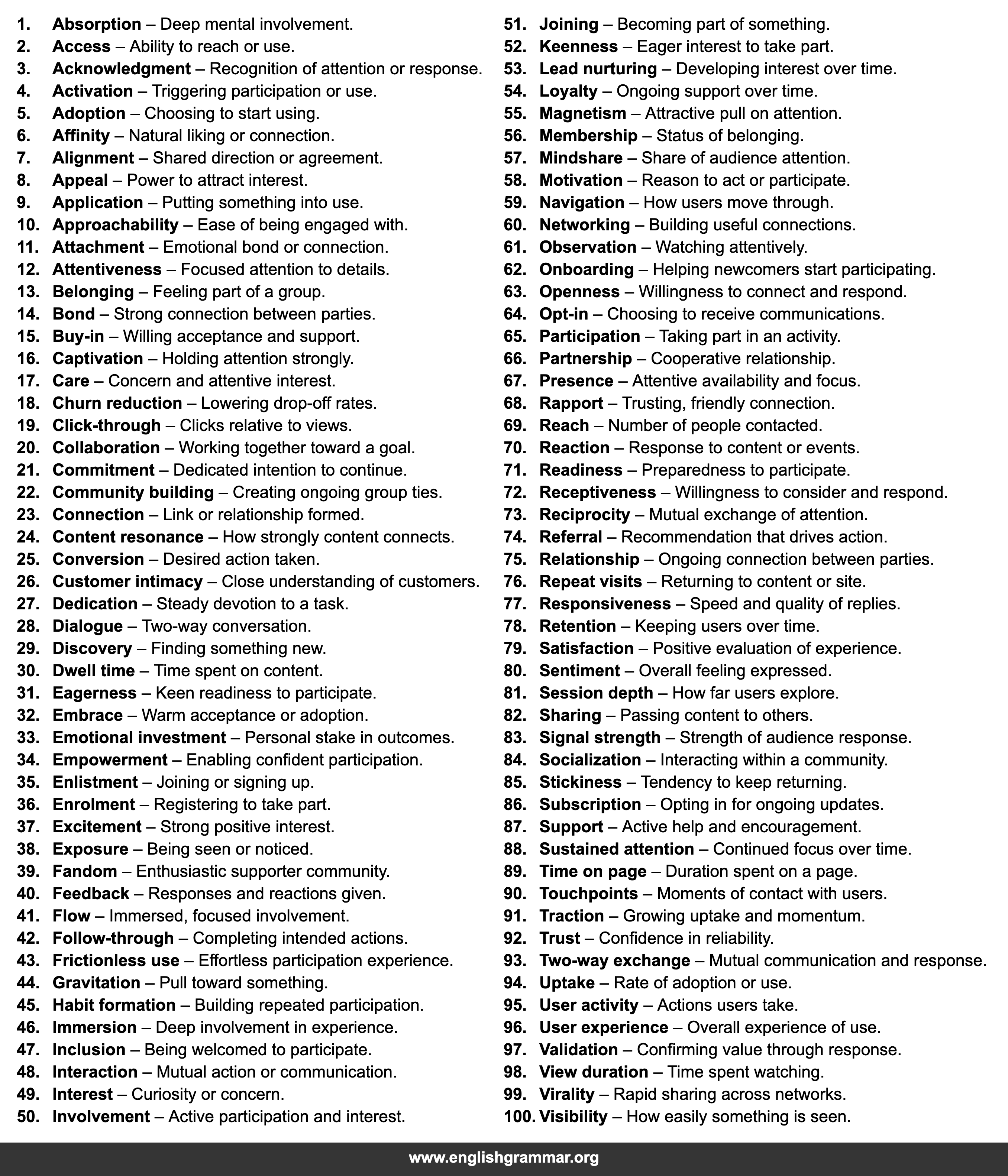 | 73. | Reciprocity | Mutual exchange of attention. |