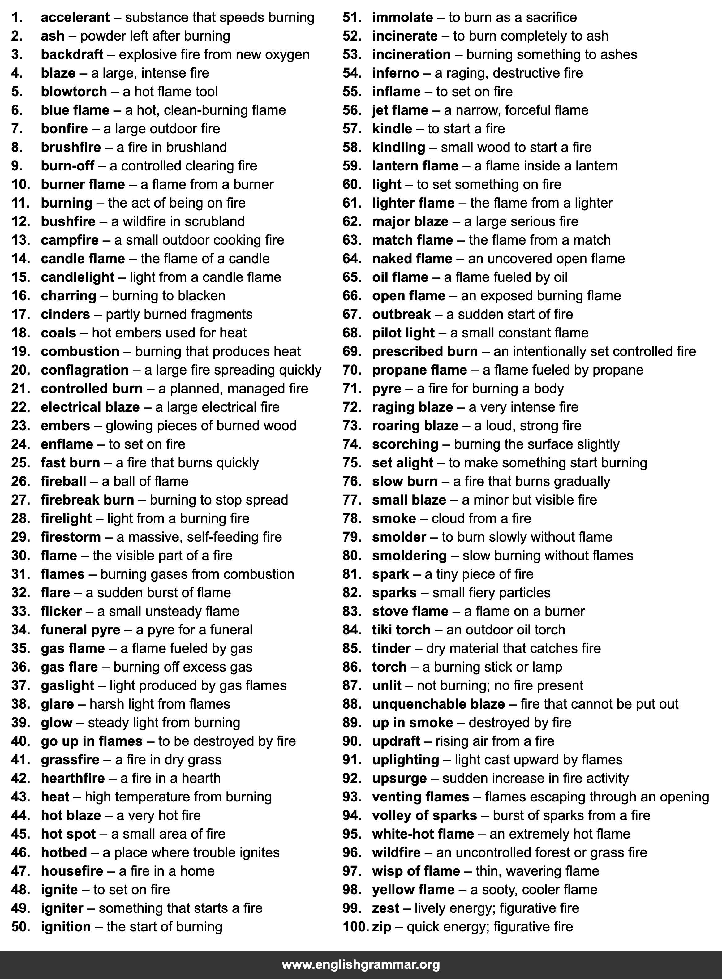 | 88. | unquenchable blaze | fire that cannot be put out |