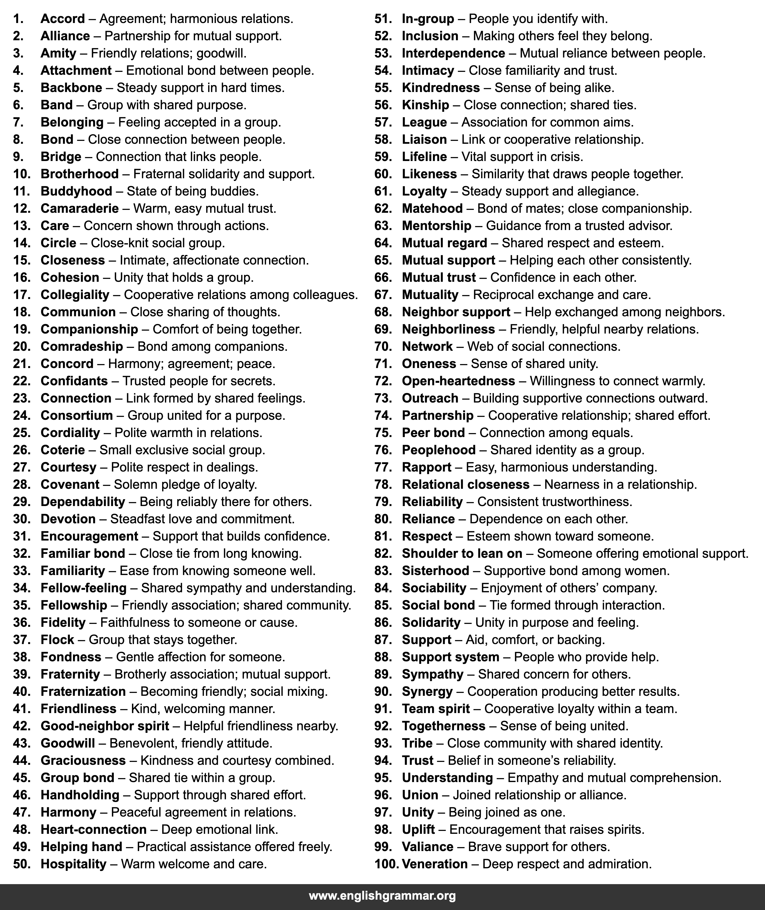 | 34. | Fellow-feeling | Shared sympathy and understanding. |