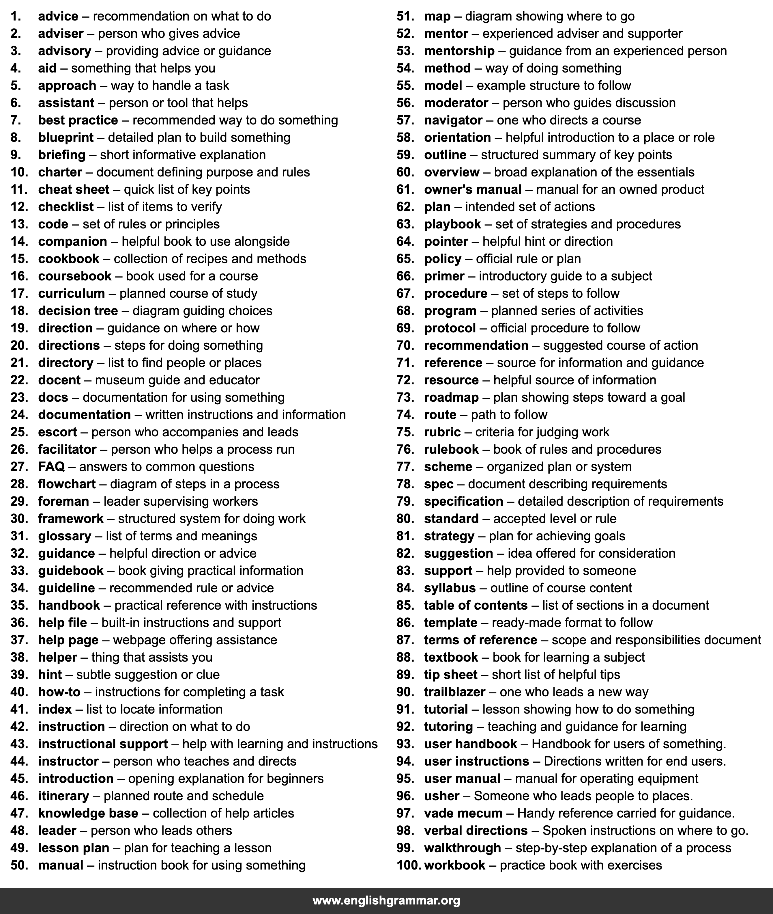 | 97. | vade mecum | Handy reference carried for guidance. |