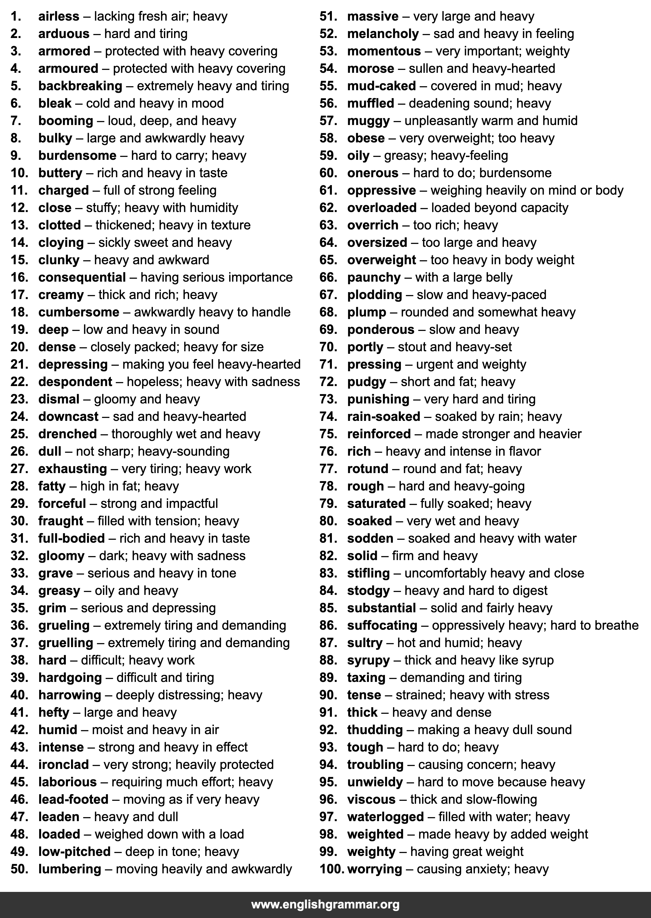 | 86. | suffocating | oppressively heavy; hard to breathe |