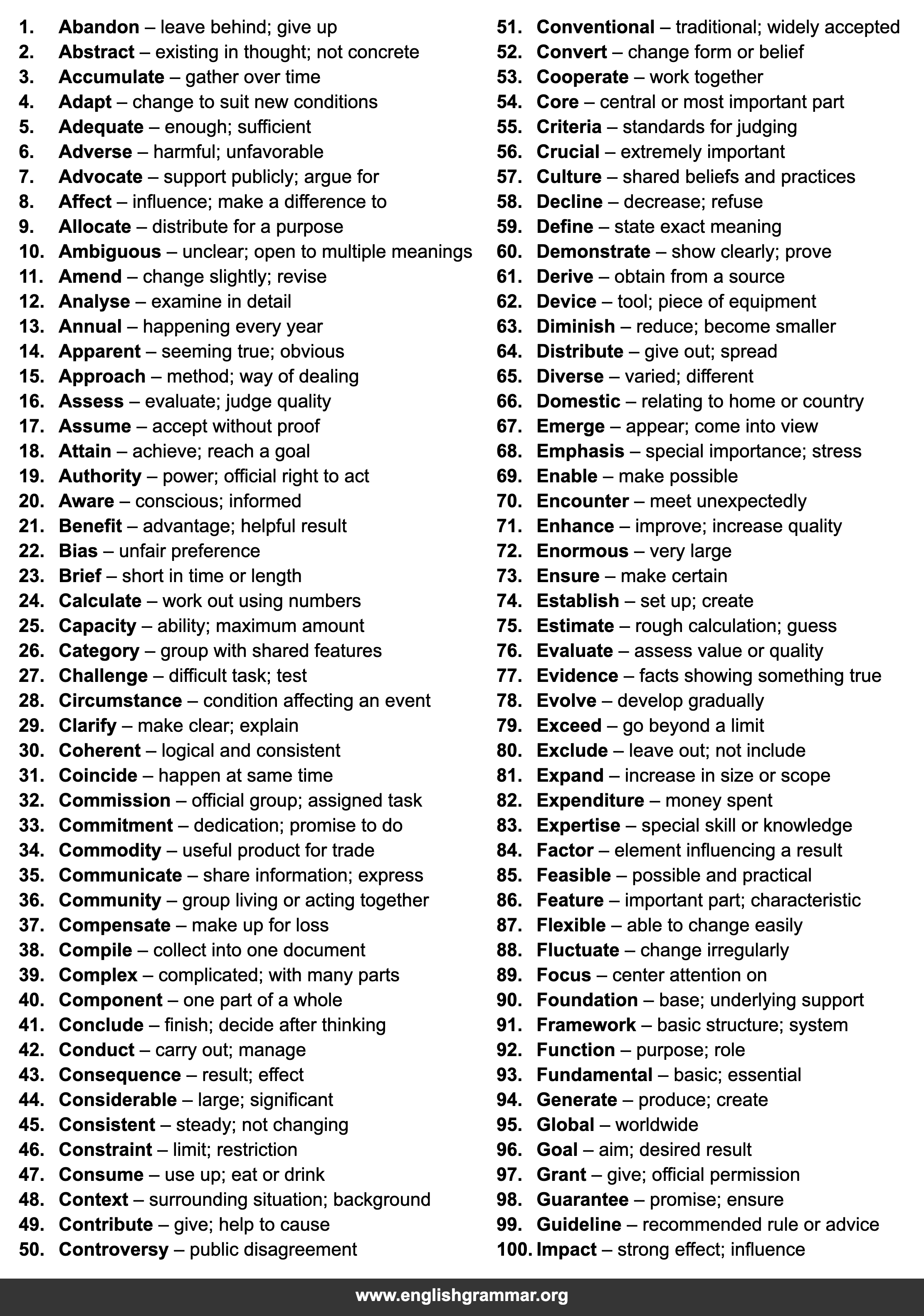 | 100. | Impact | strong effect; influence |