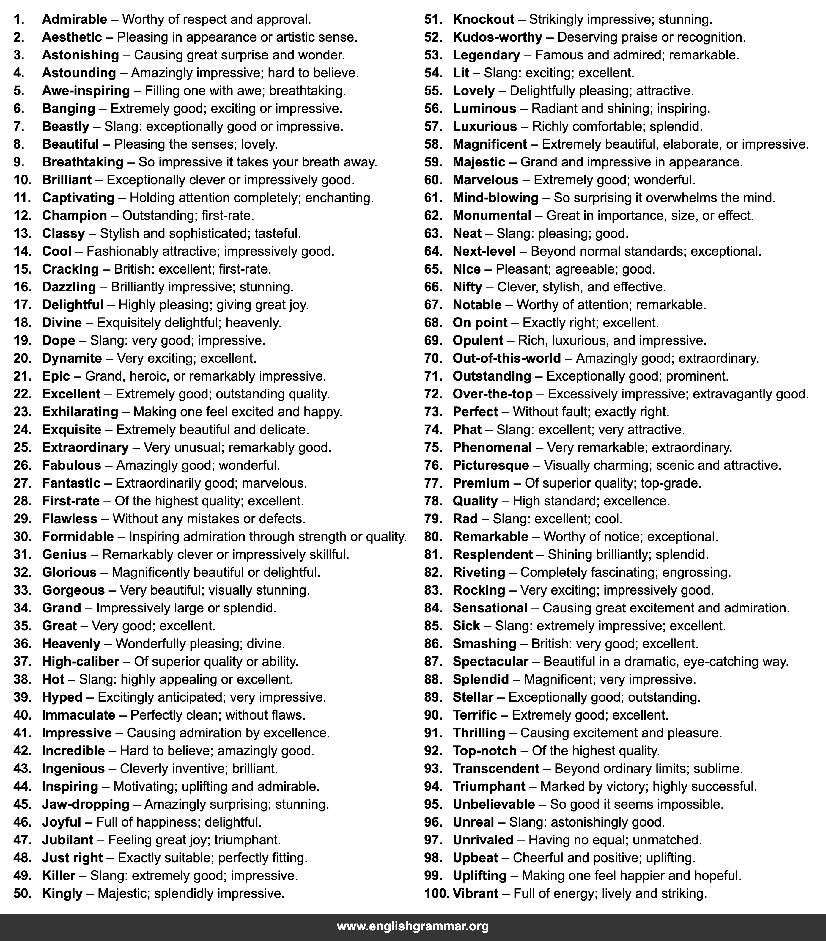 | 25. | Extraordinary | Very unusual; remarkably good. |
