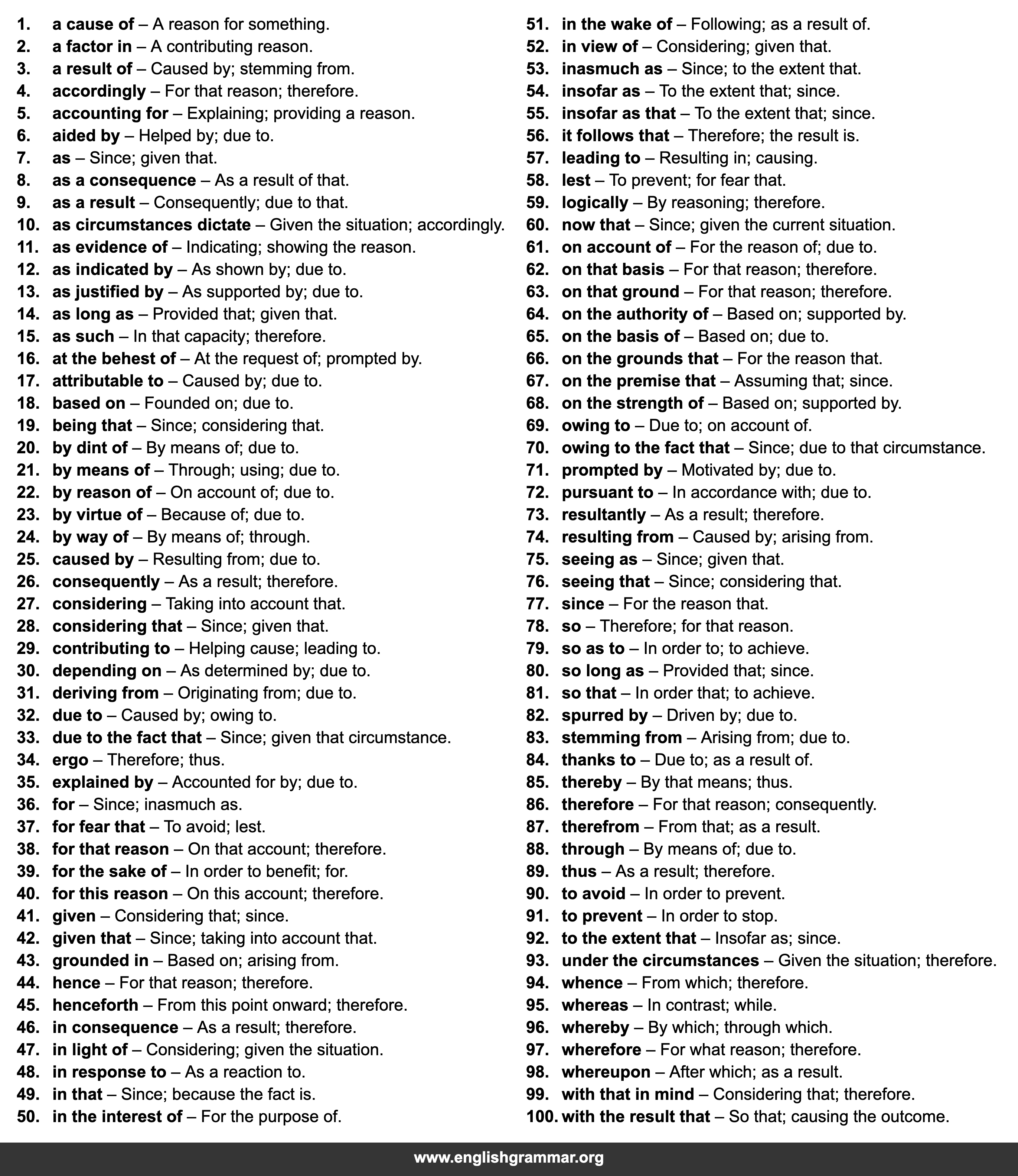 | 70. | owing to the fact that | Since; due to that circumstance. |