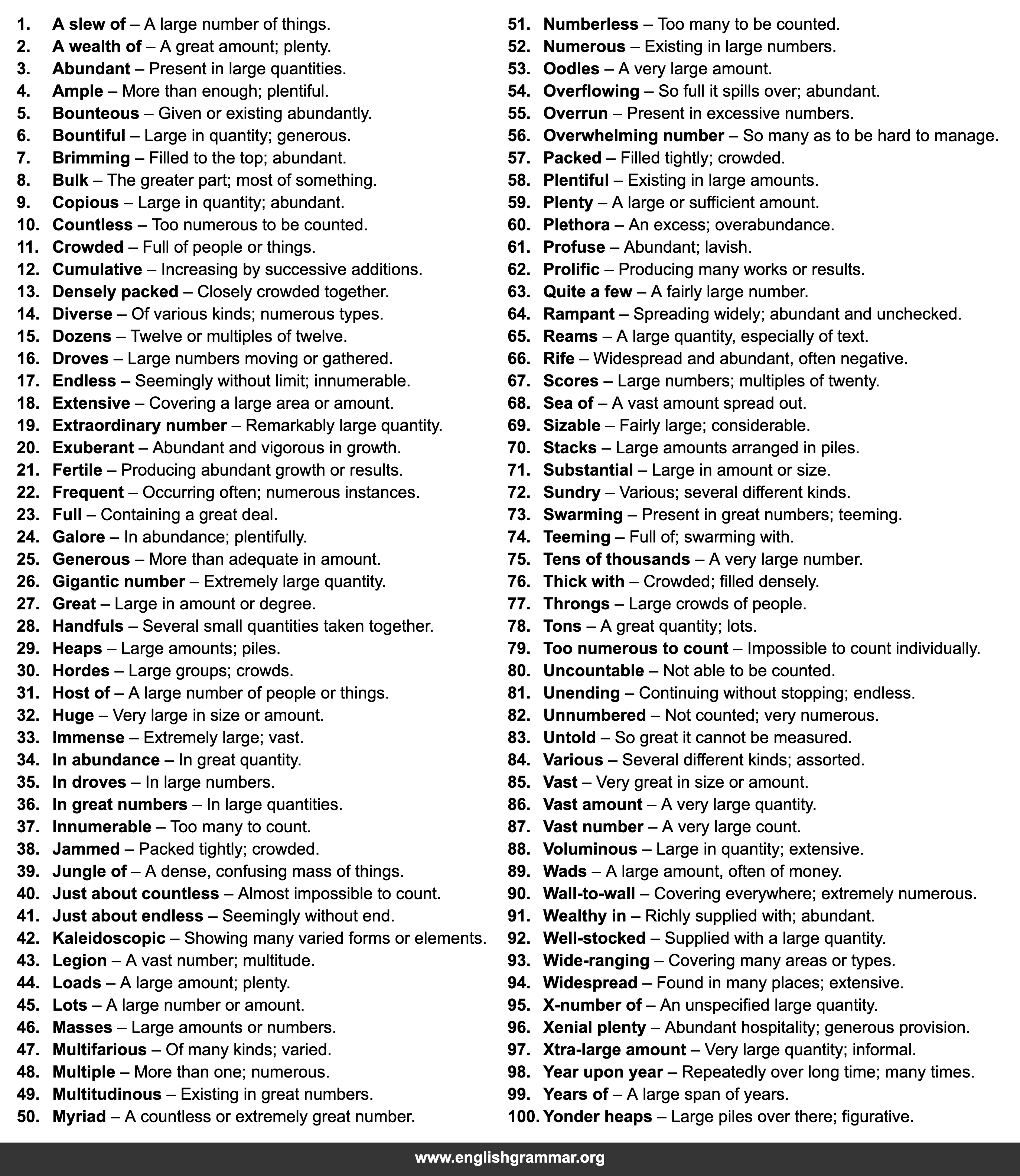 | 19. | Extraordinary number | Remarkably large quantity. |