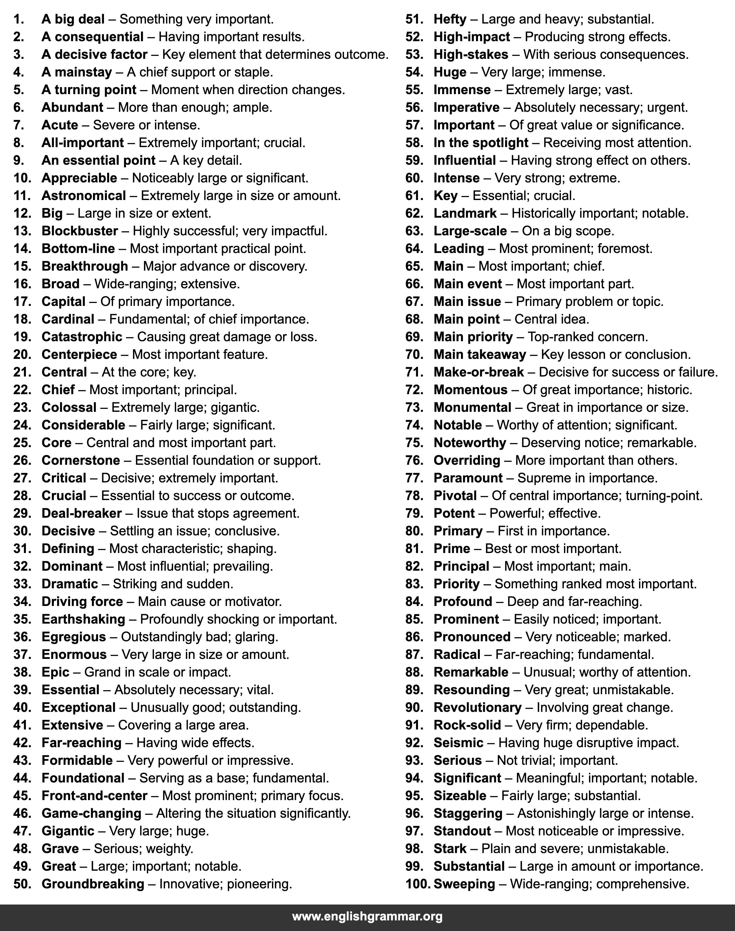 | 8. | All-important | Extremely important; crucial. |