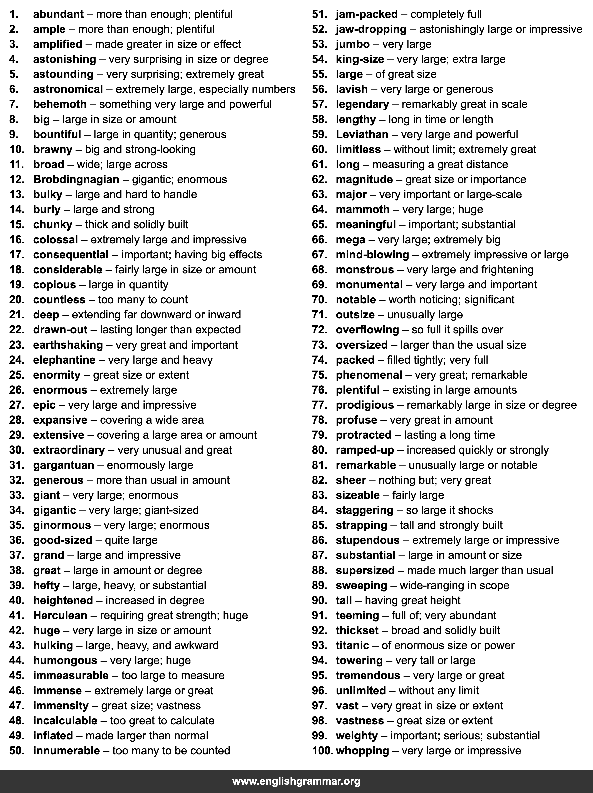 | 31. | gargantuan | enormously large |