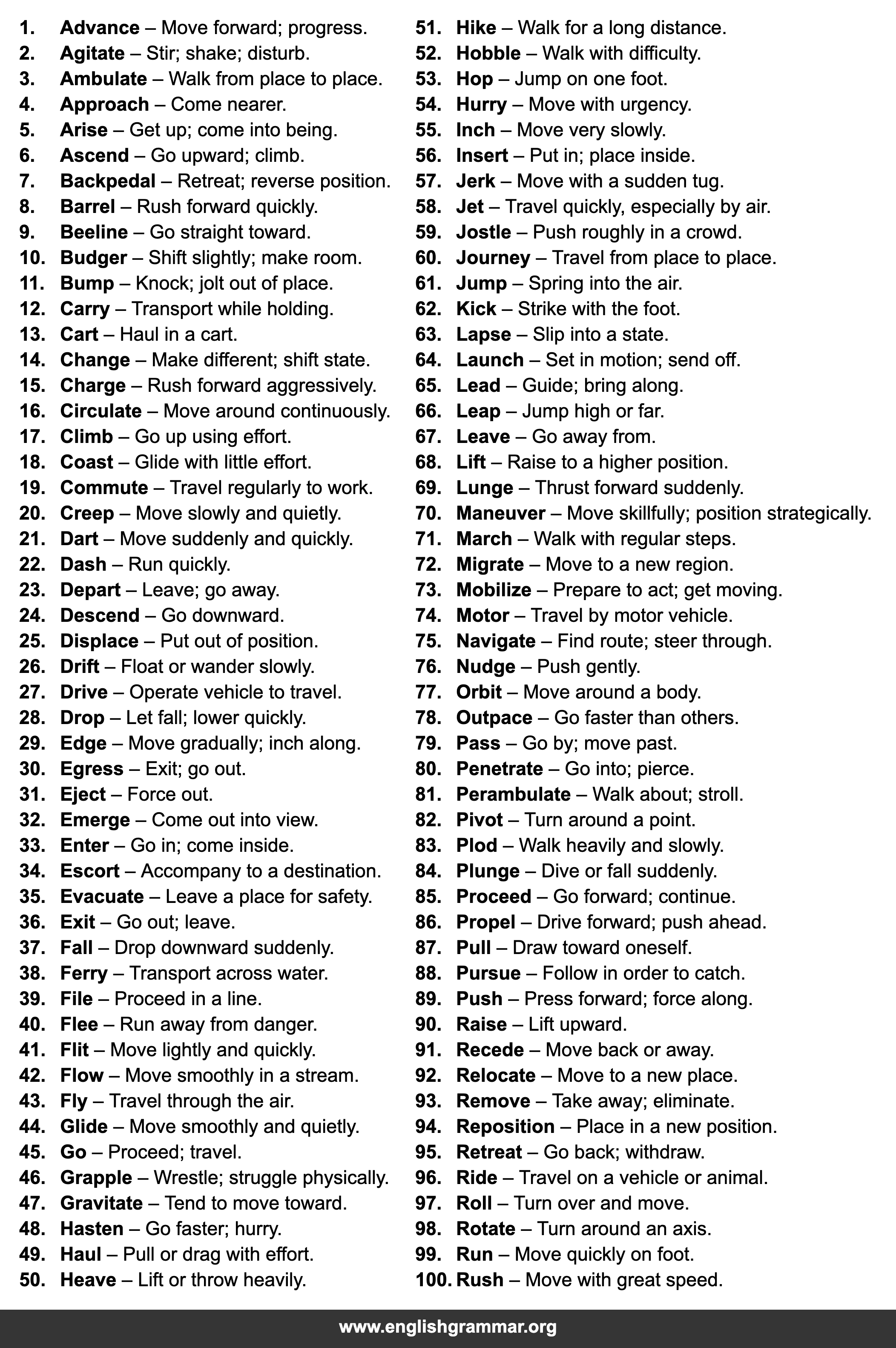 | 44. | Glide | Move smoothly and quietly. |