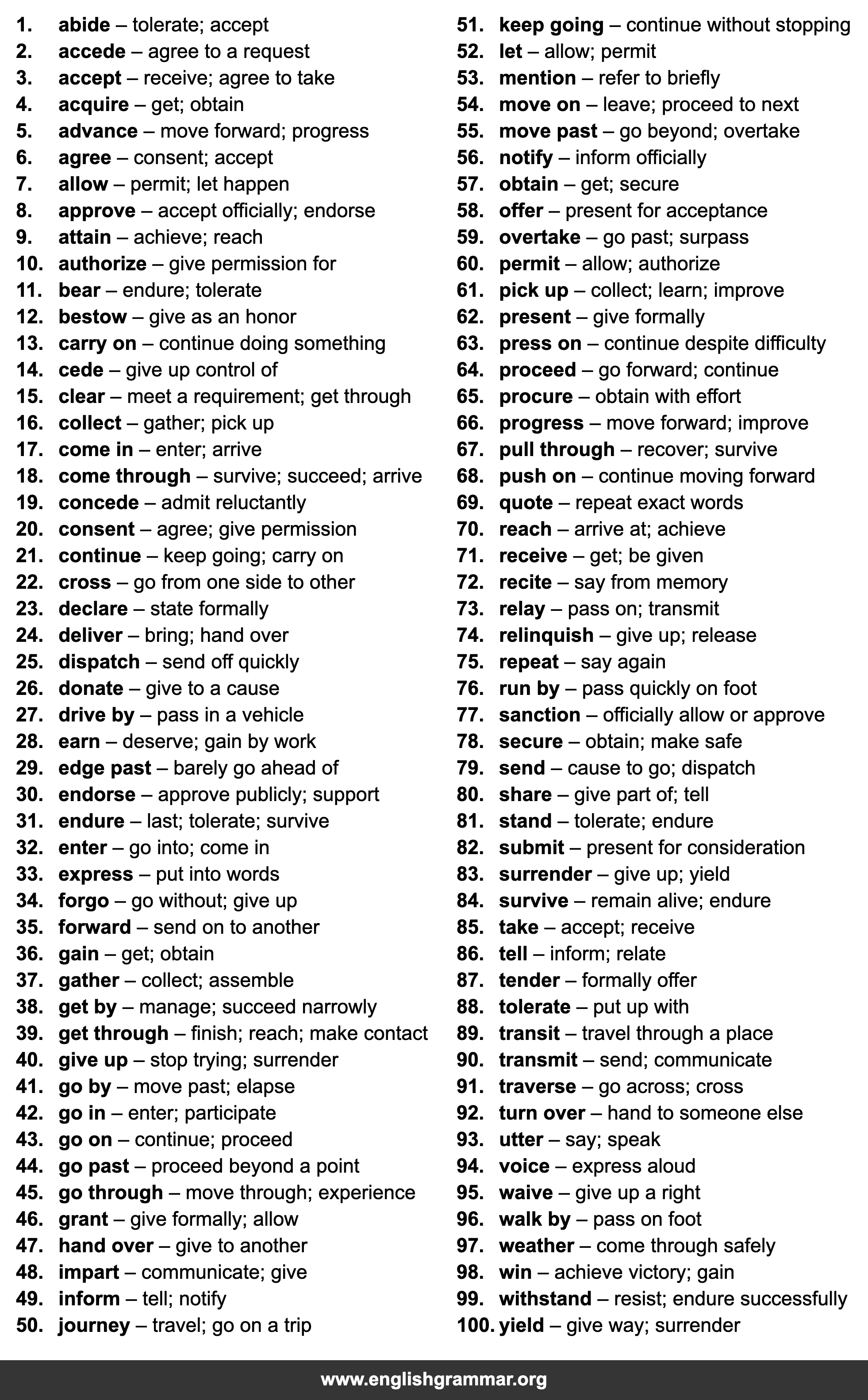| 46. | grant | give formally; allow |