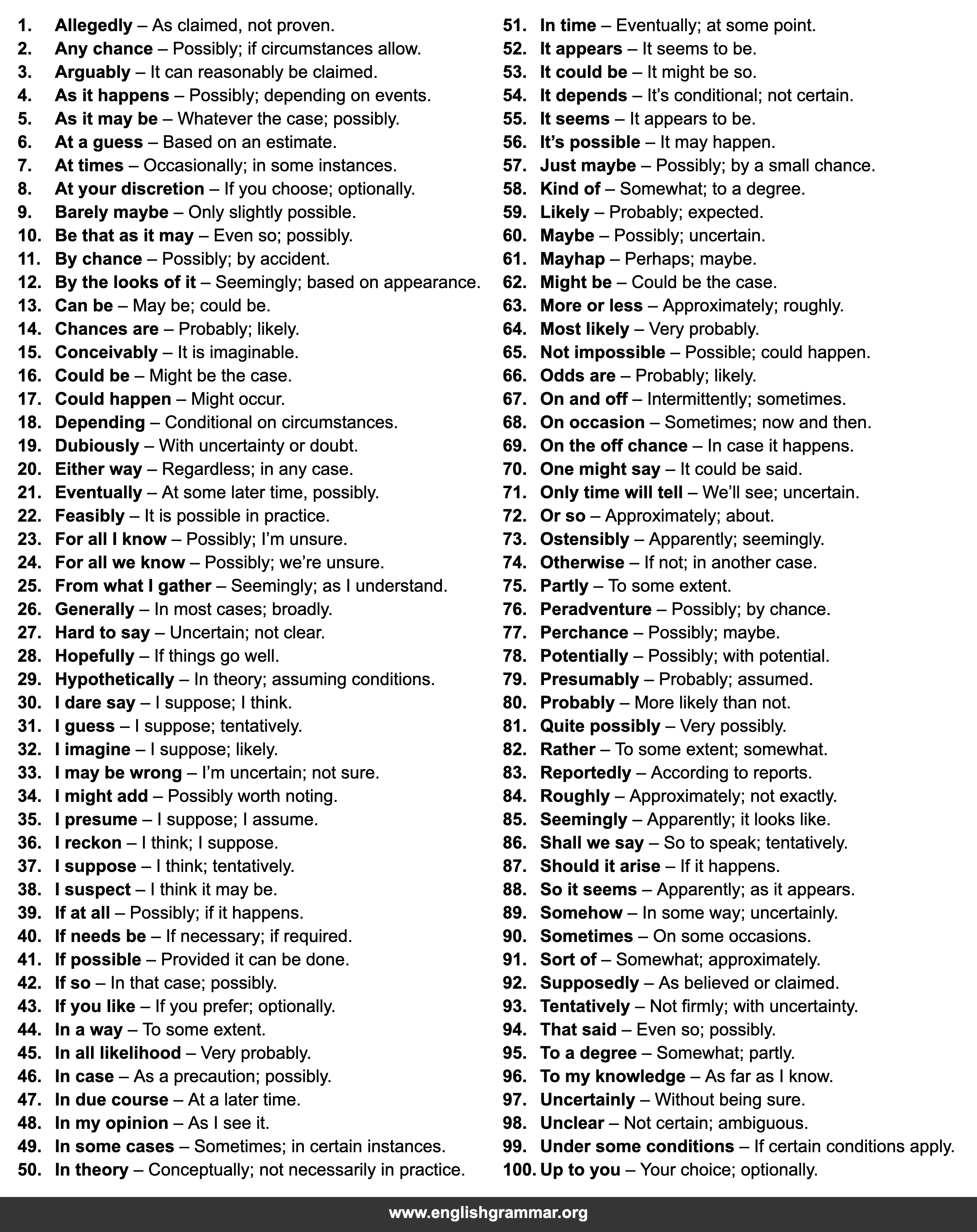 | 33. | I may be wrong | I’m uncertain; not sure. |
