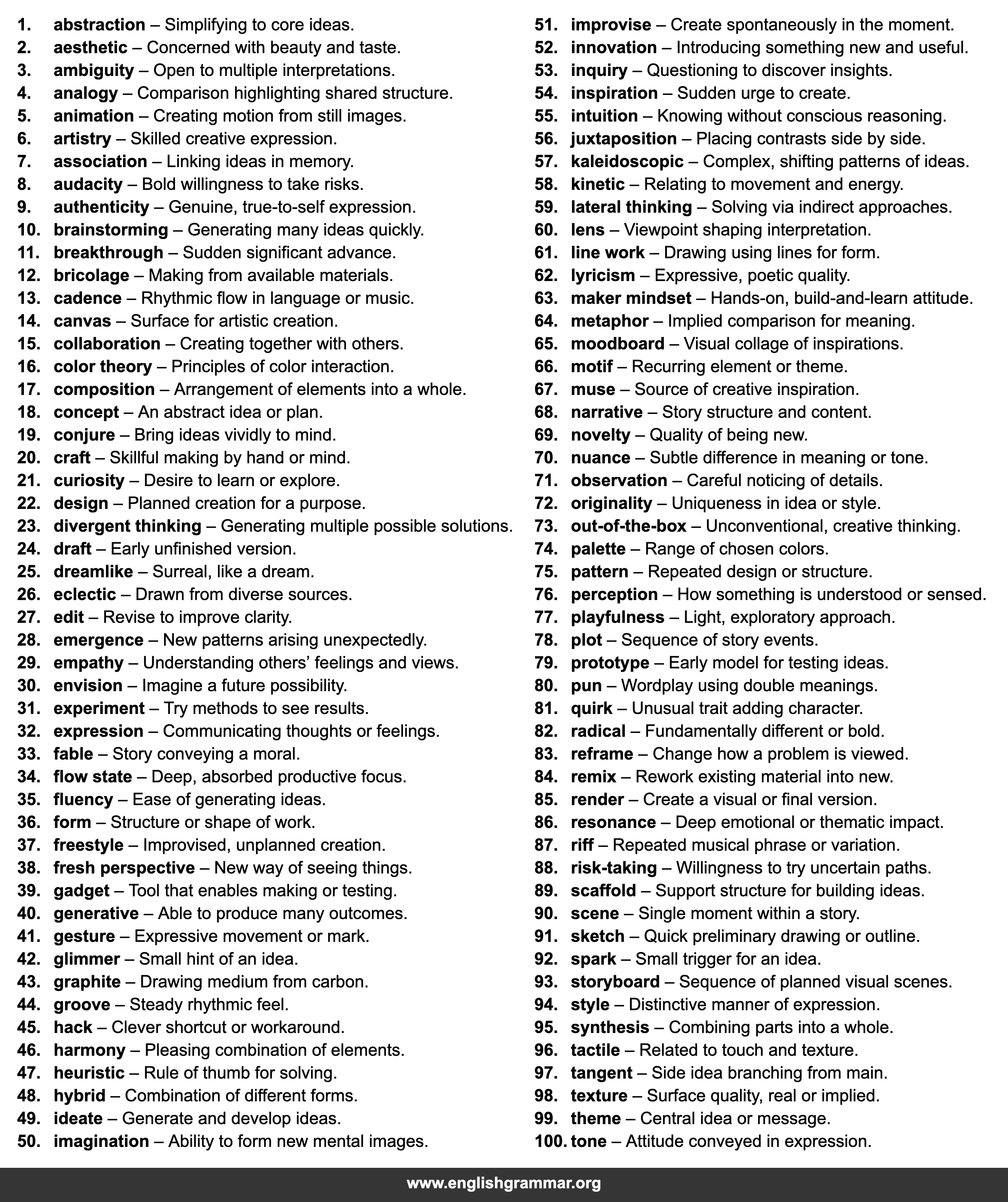 | 73. | out-of-the-box | Unconventional, creative thinking. |