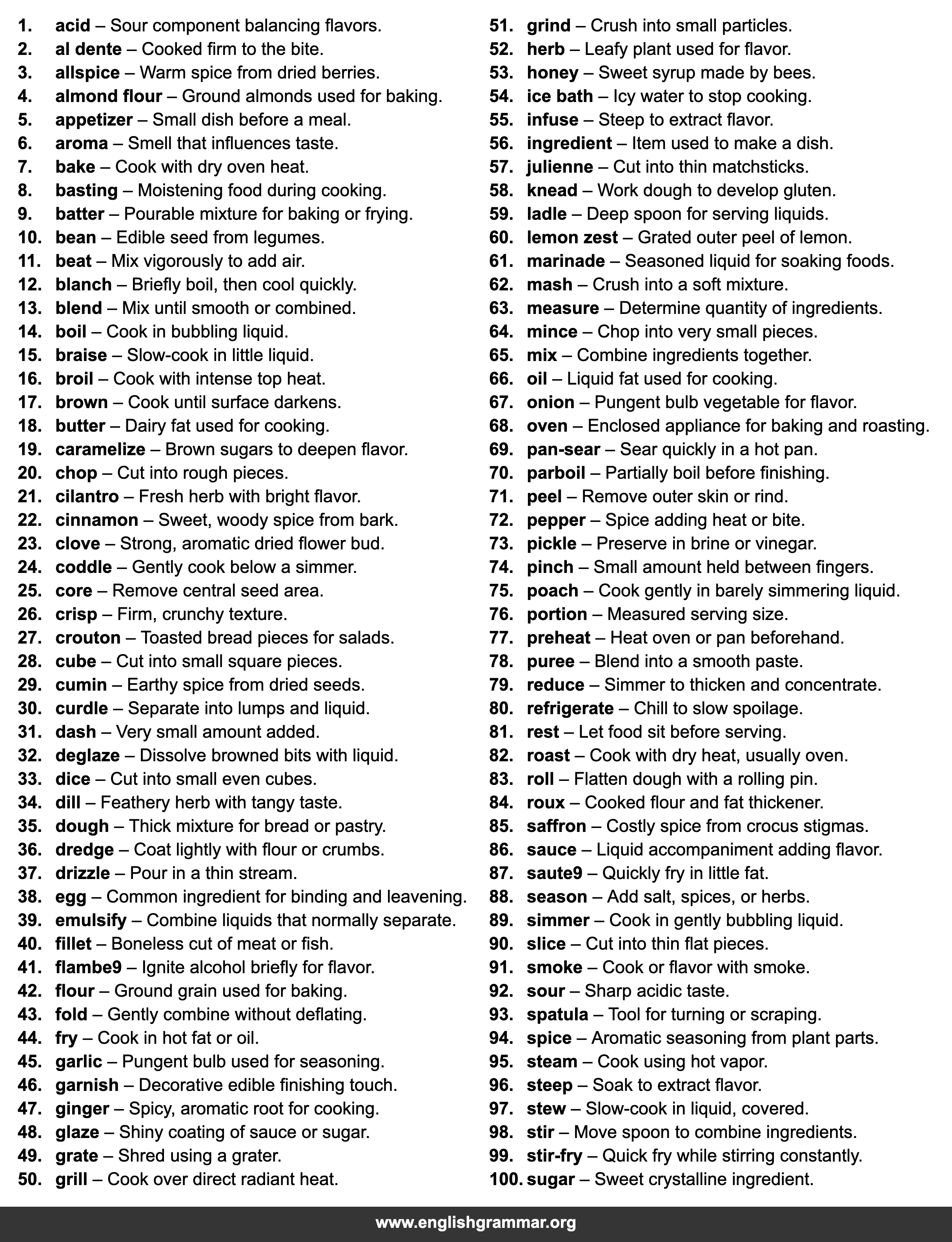 | 65. | mix | Combine ingredients together. |