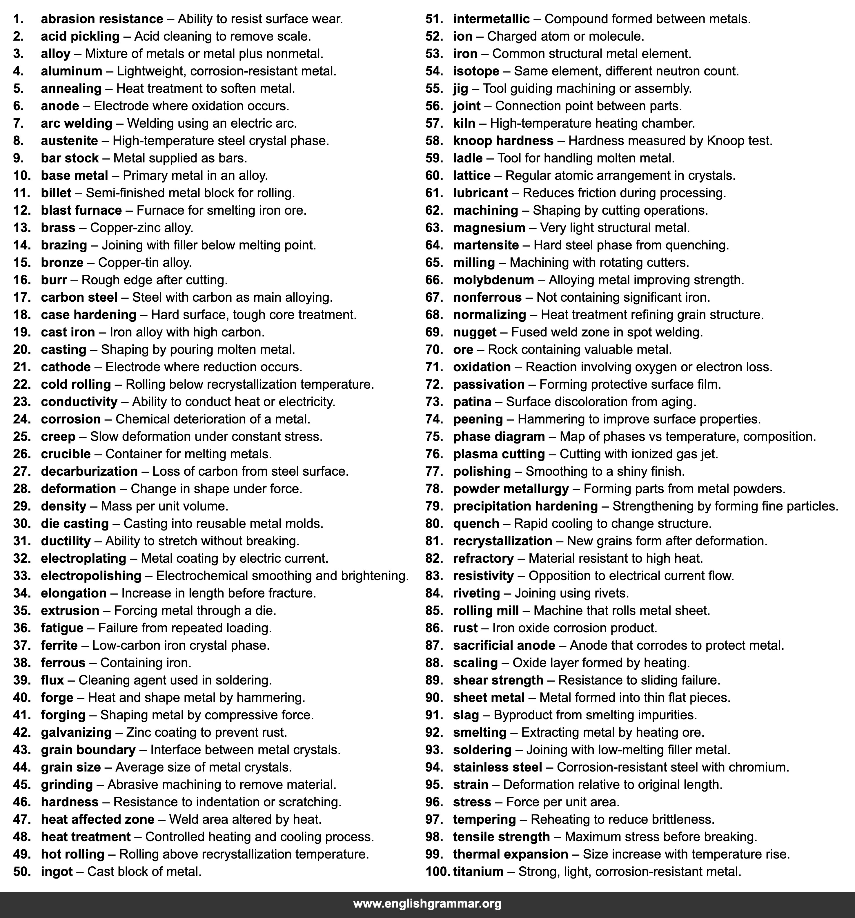 | 44. | grain size | Average size of metal crystals. |