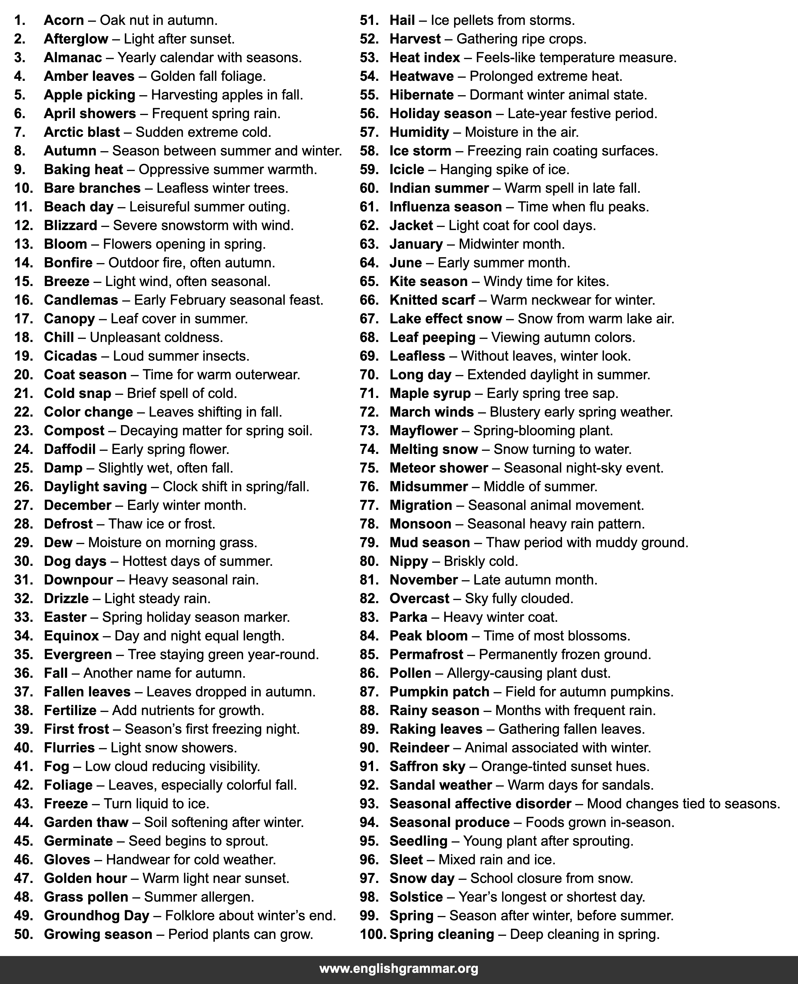 | 68. | Leaf peeping | Viewing autumn colors. |