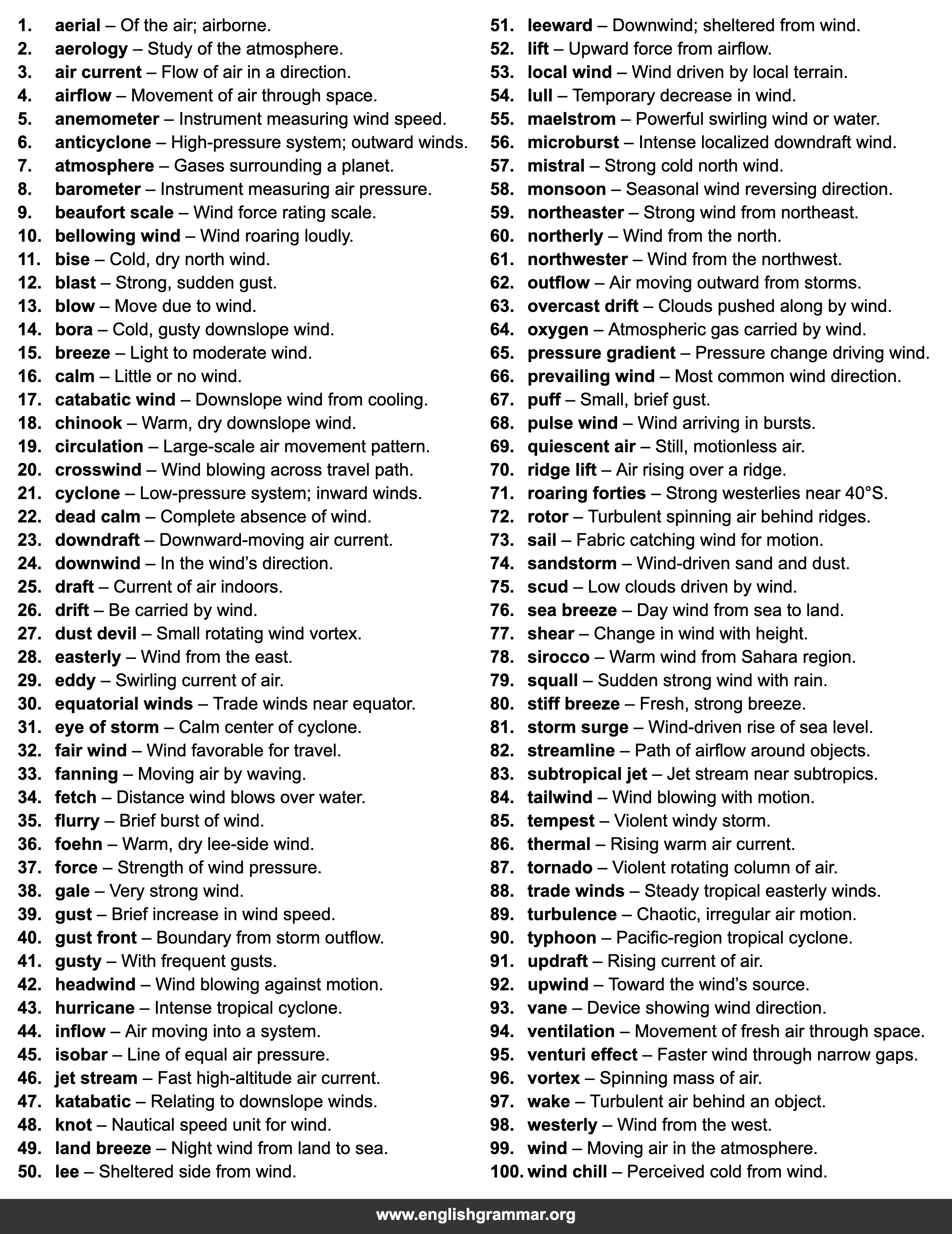| 17. | catabatic wind | Downslope wind from cooling. |