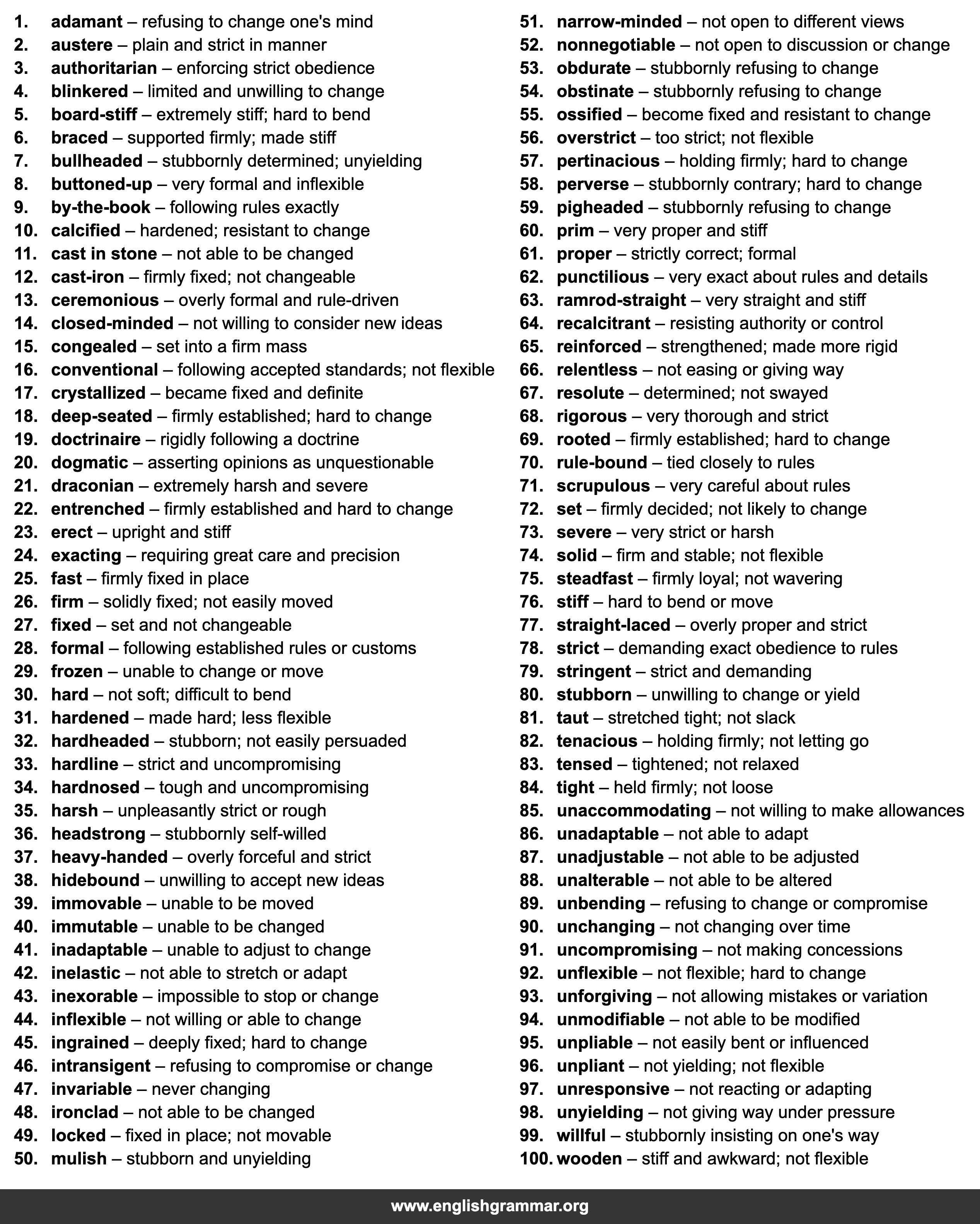 | 32. | hardheaded | stubborn; not easily persuaded |