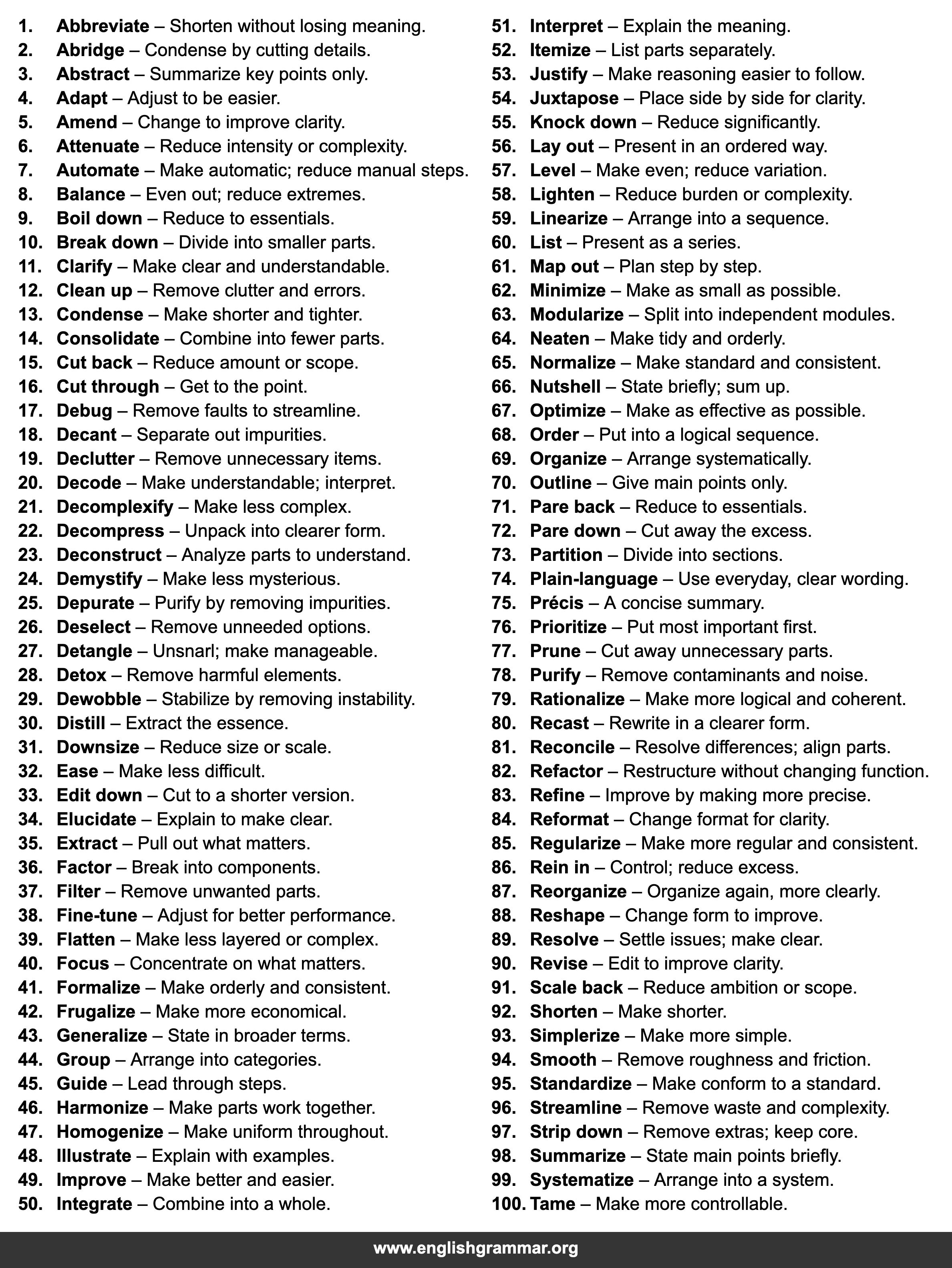 | 1. | Abbreviate | Shorten without losing meaning. |