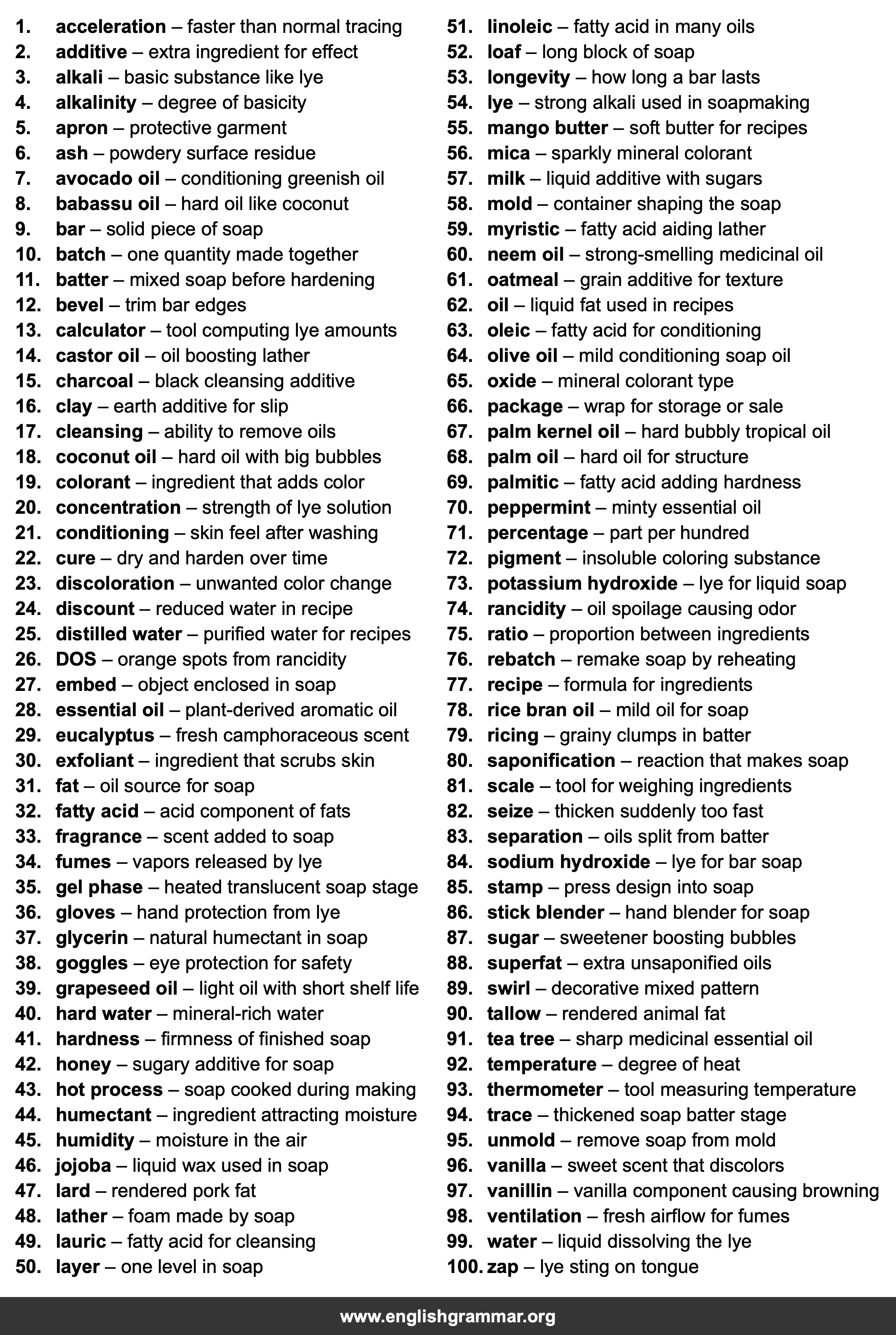 | 67. | palm kernel oil | hard bubbly tropical oil |