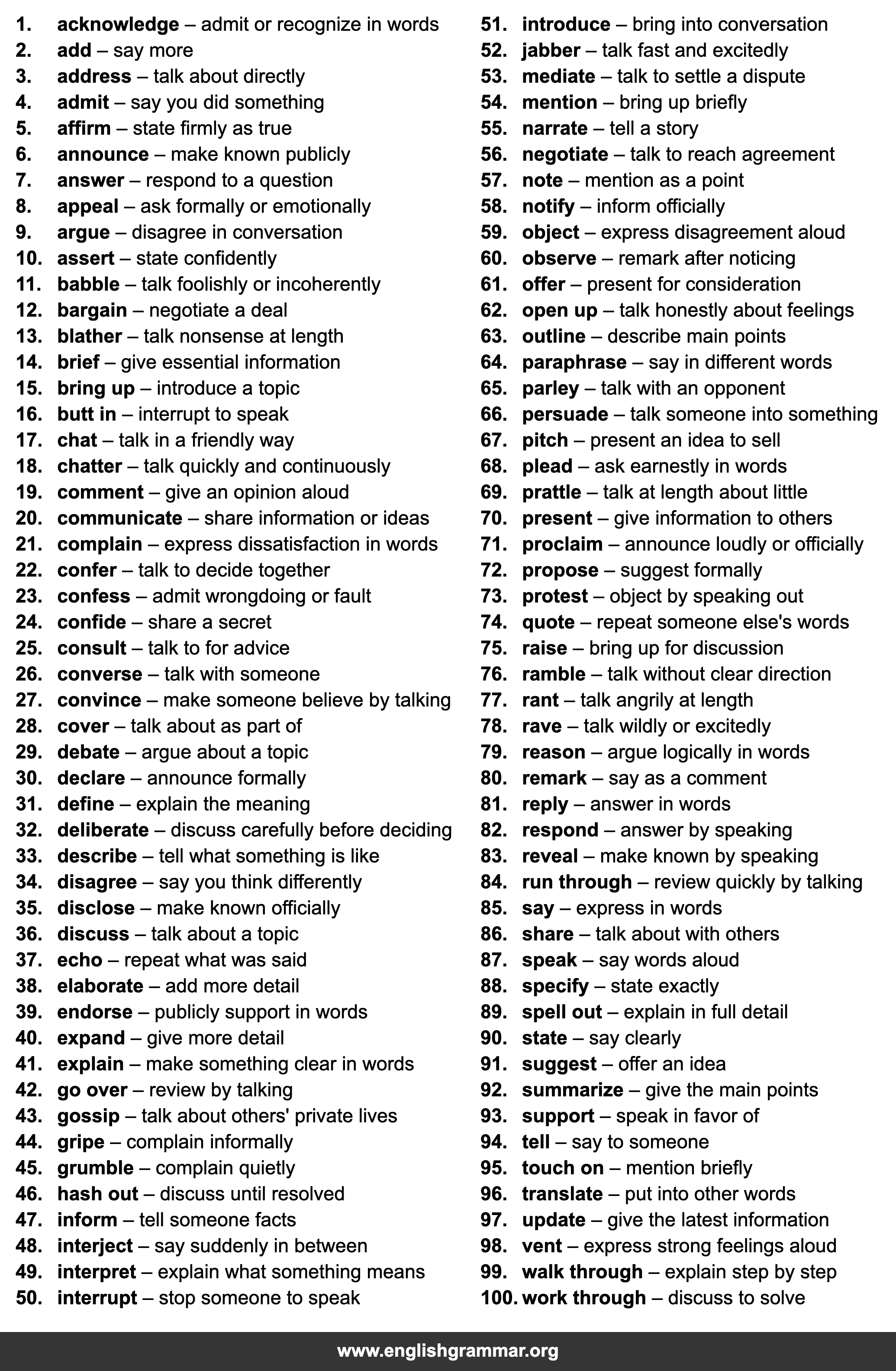 | 18. | chatter | talk quickly and continuously |