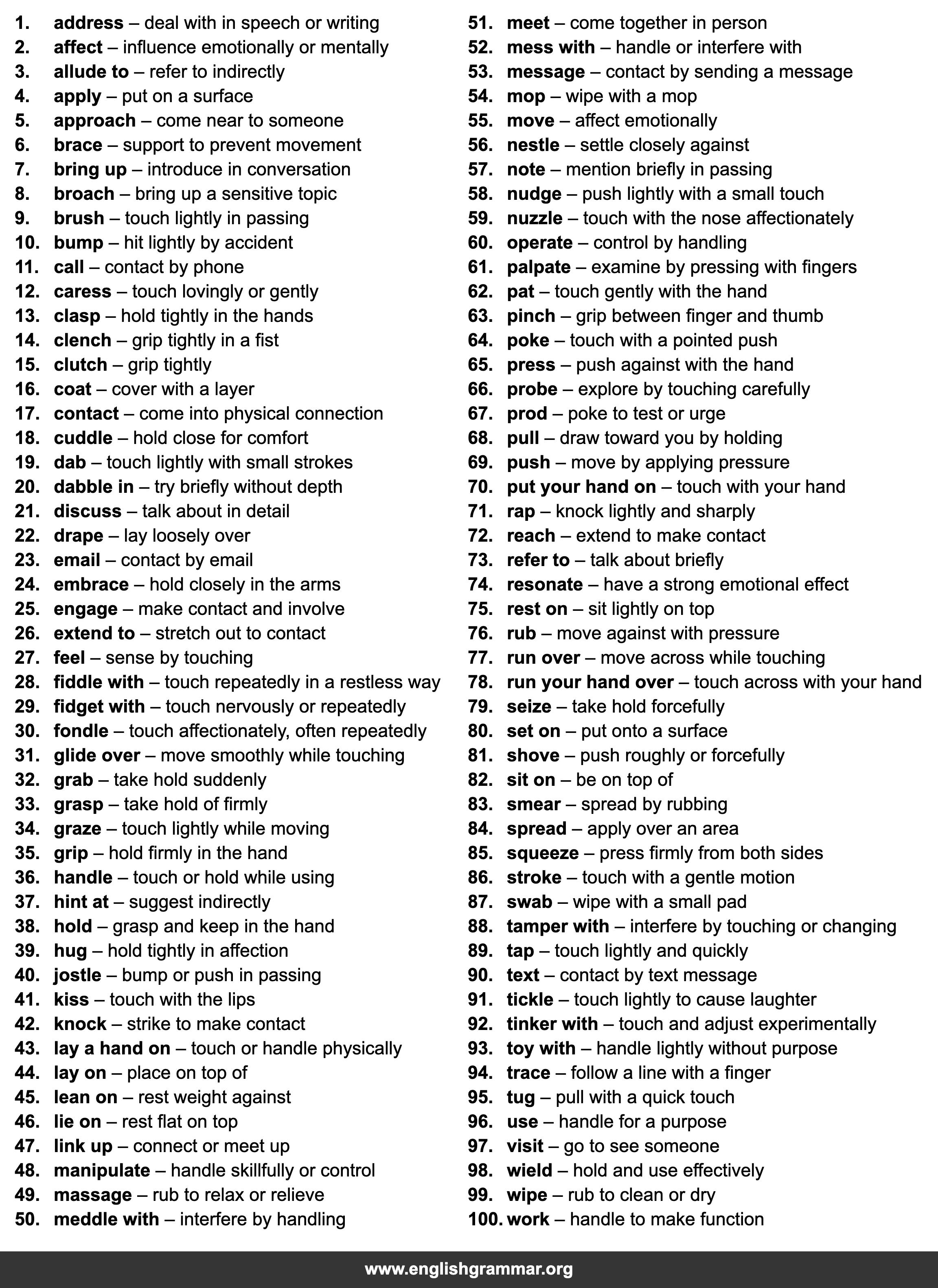 | 36. | handle | touch or hold while using |