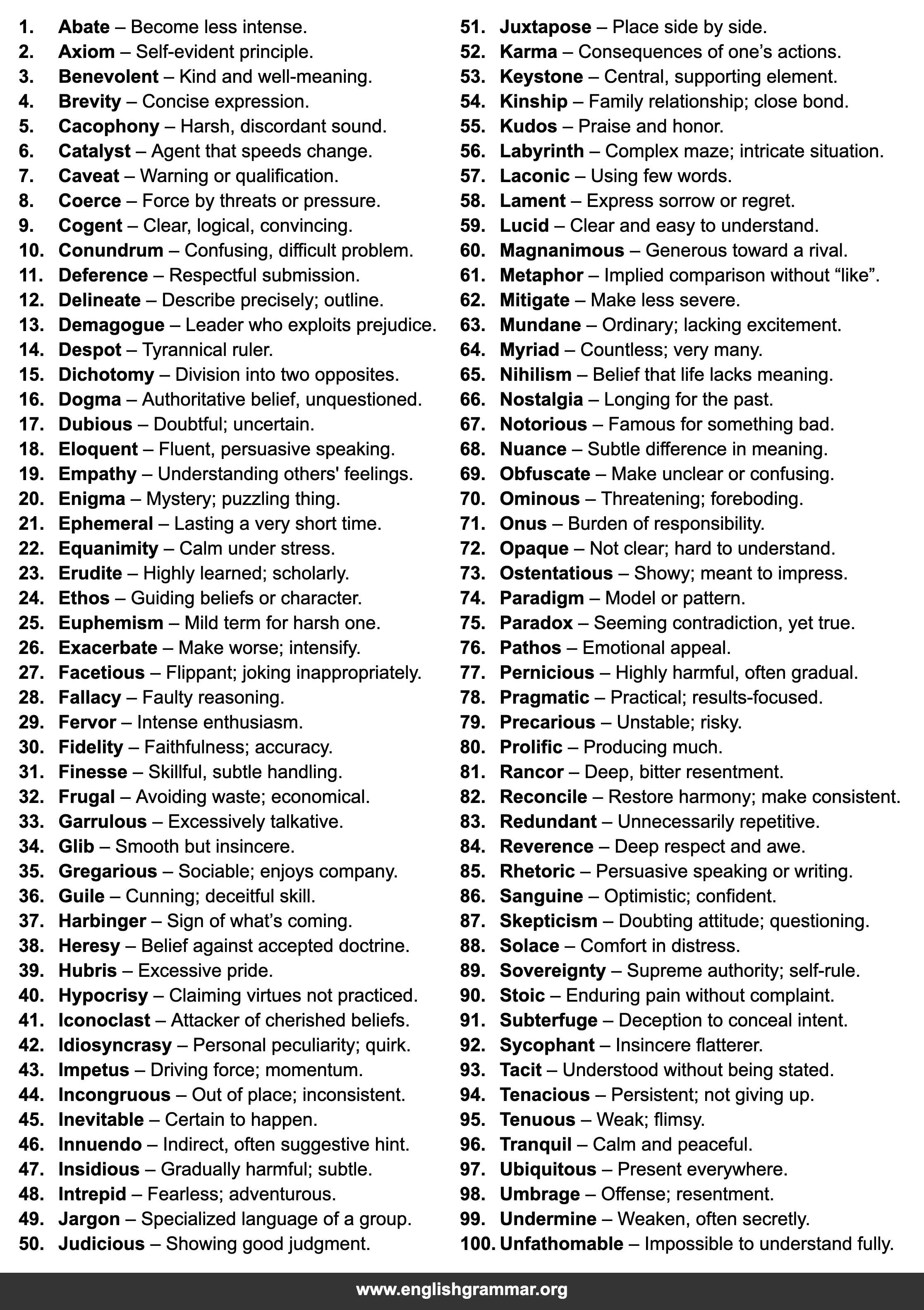 | 18. | Eloquent | Fluent, persuasive speaking. |